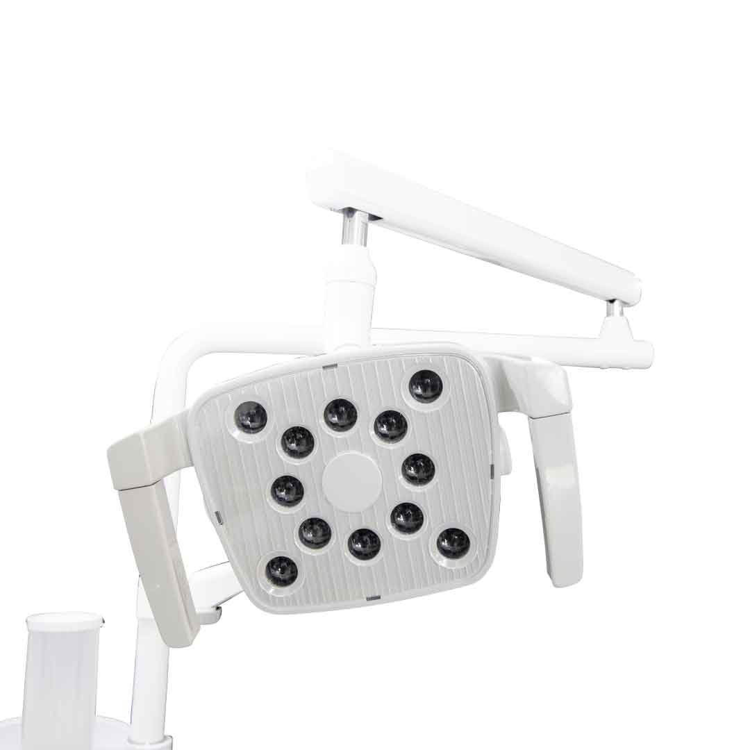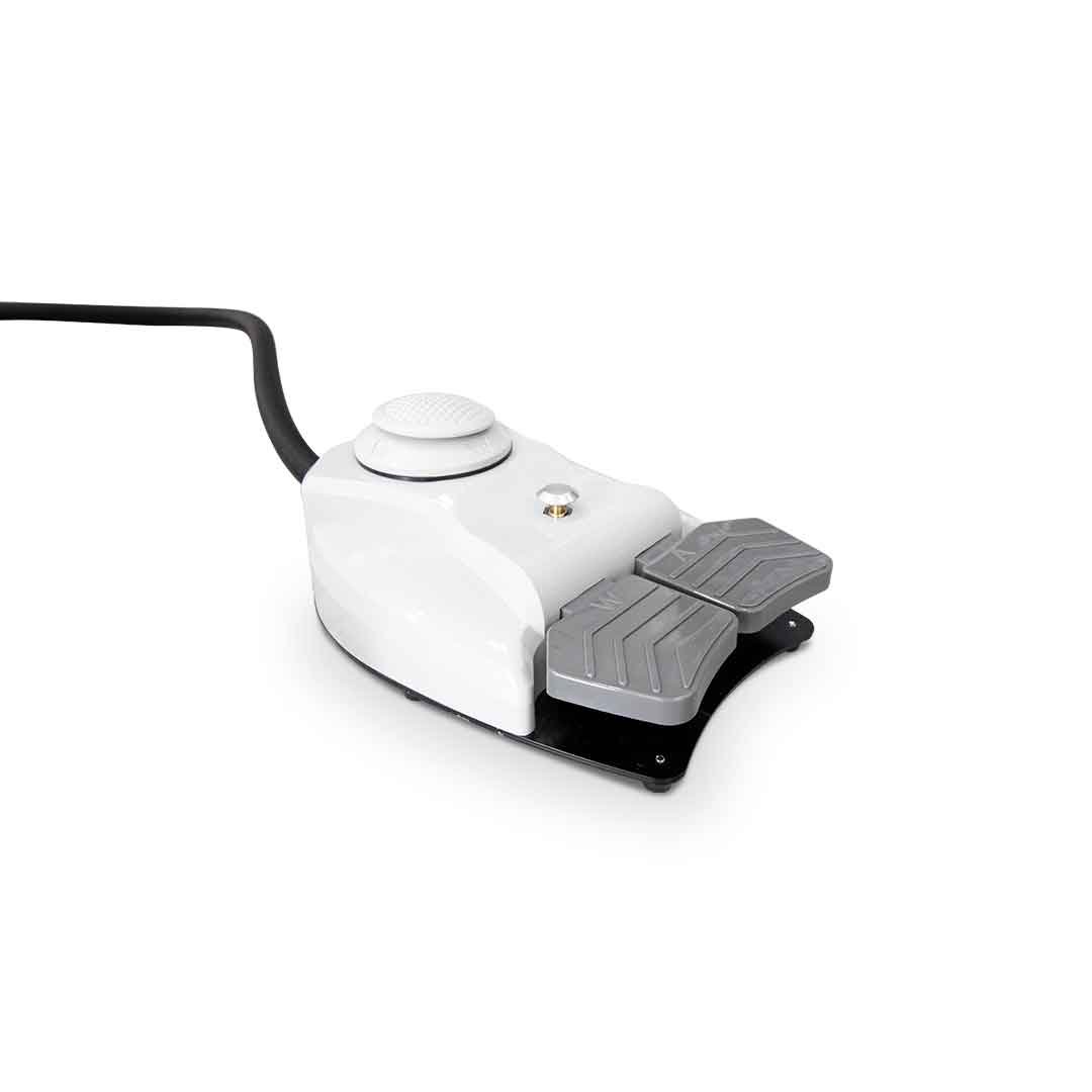 La unidad dental completamente eléctrica ofrece 6 movimientos controlados mediante un pedal anatómico multifuncional que también regula el agua y el aire. Equipada con motoreductores silenciosos y un soporte total de 250 kg, garantiza durabilidad y rendimiento. Su diseño incluye respaldo y sillón amplios de poliuretano de alta densidad, cabezal ajustable y coderas rotatorias para comodidad y accesibilidad del paciente. Incorpora una lámpara LED de 12 leds con ajuste de intensidad autoenfoque y encendido por sensor, 4 de los son de luz cálida. Además, cuenta con un brazo auxiliar para trabajo a 4 manos, controles digitales, eyector quirúrgico y semi quirúrgico, jeringa triple y lámpara de fotocurado. El sistema de agua purificada presurizada (Flush) y un módulo neumático con una charola más amplia y panel de control frontal optimizan el manejo, mientras que las tres entradas automáticas para piezas de mano completan su funcionalidad avanzada.