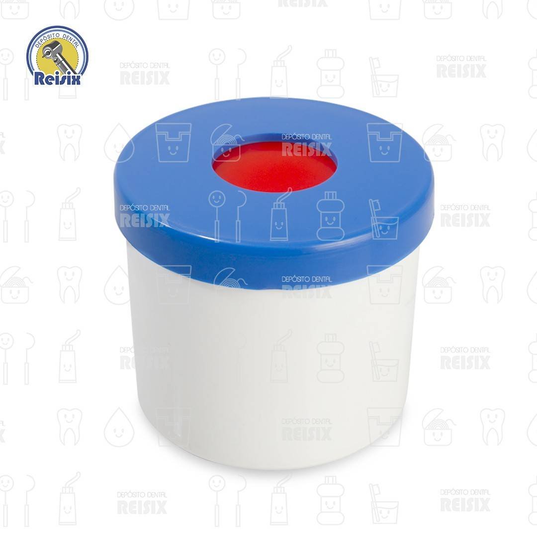 Contenedor fabricado en plástico, autoclavable, con tapa, con sistema de resorte que impulsa el mismo, evitando así la contaminación. Resguarda el algodón de modo higiénico, contenedor para depositar el algodón y gasas de deshecho.