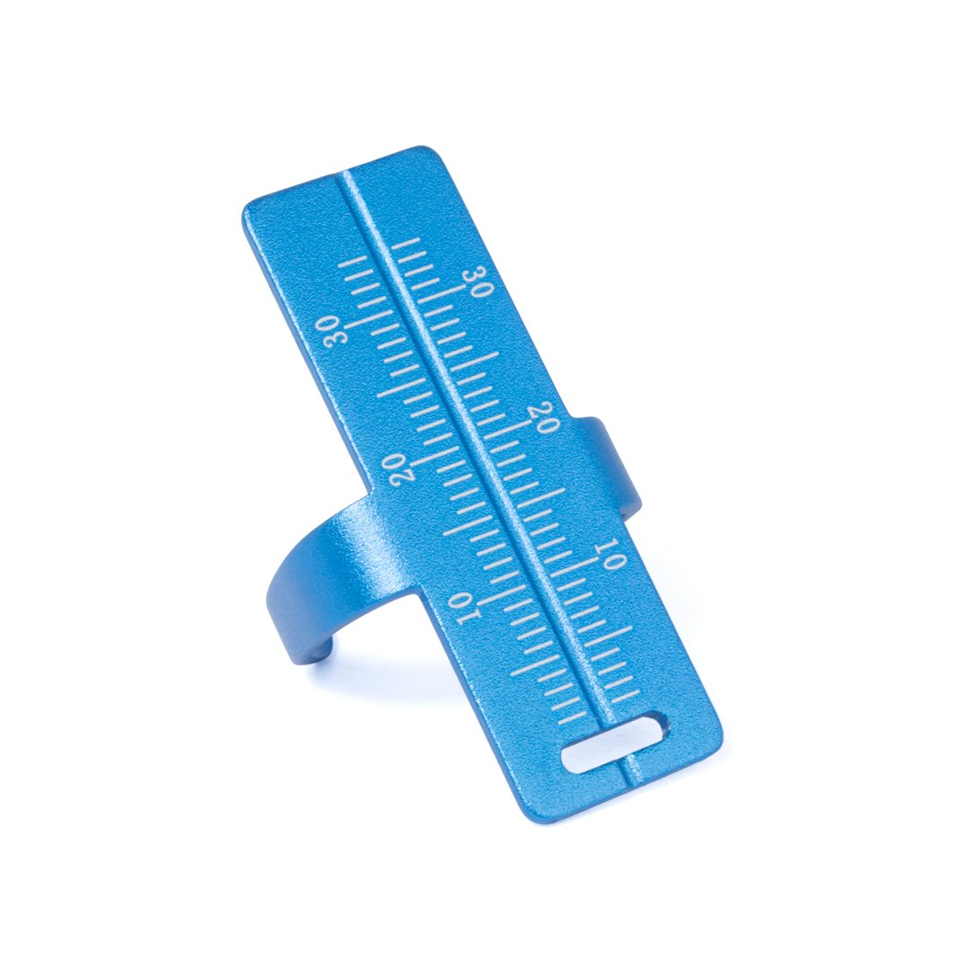 Forma rectangular y alargada con una escala milimétrica grabada.