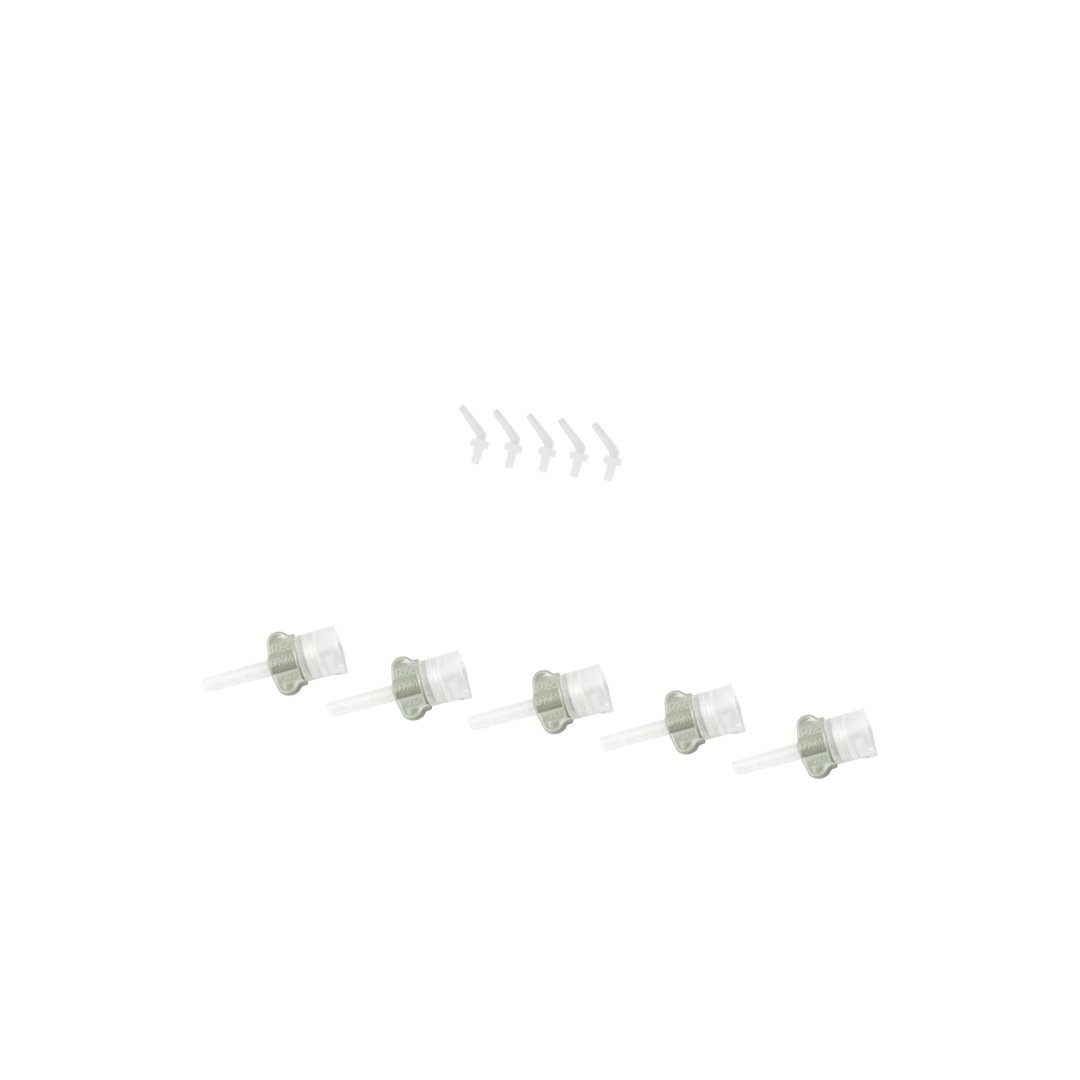 El kit contiene: 5 puntas mezcladoras, 5 puntas intra orales