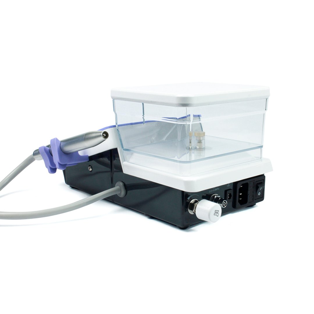 Suministro de agua dual, por toma o déposito para su uso como ultrasonidos portátil, y la posibilidad de usar medicamentos y líquidos como clorhexidina o peróxidos o hipoclorito de sodio.