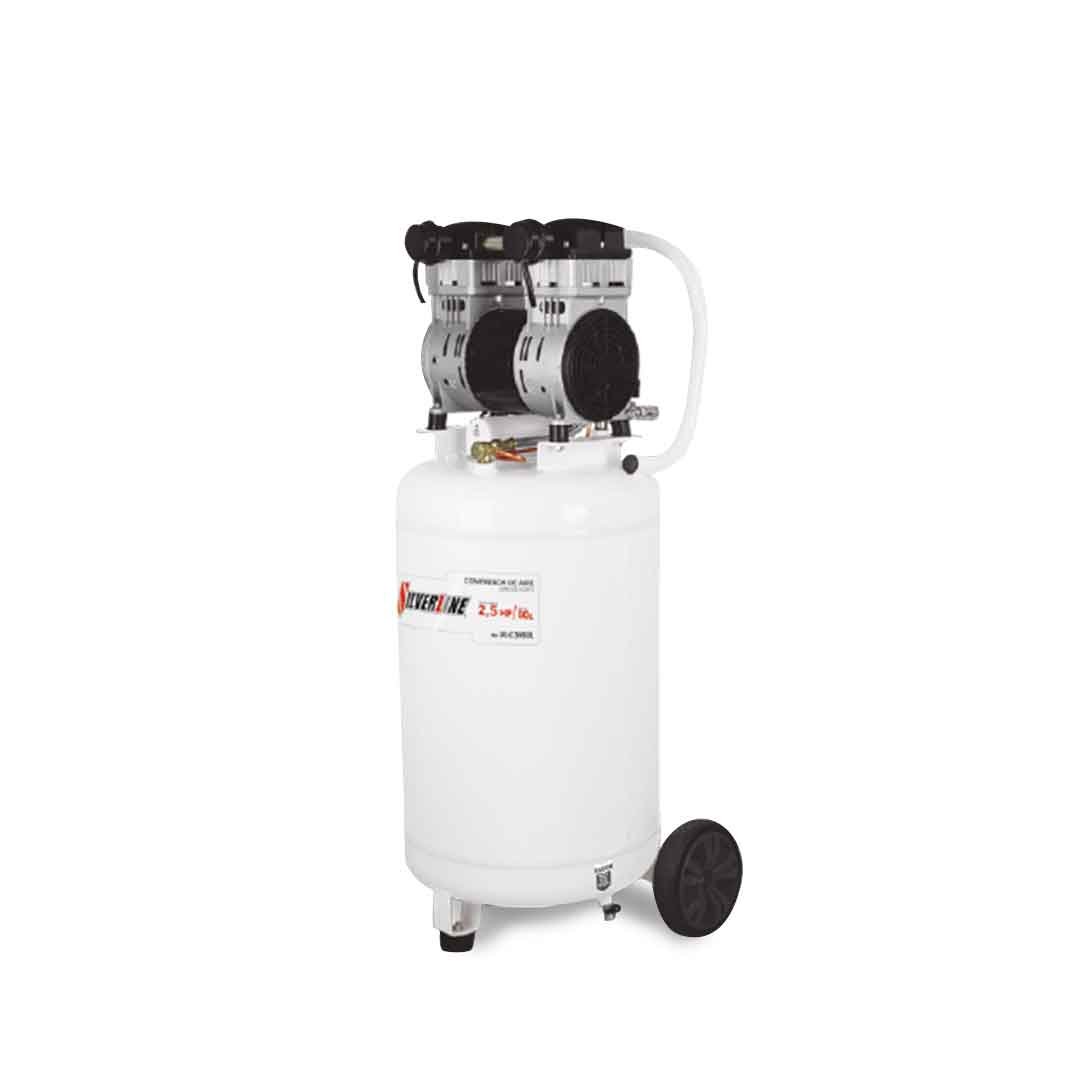 Compresor de aire libre de aceite que cuenta con un motor silencioso (60 dB) además incluye un filtro separador de humedad, perfecto para el consultorio dental.