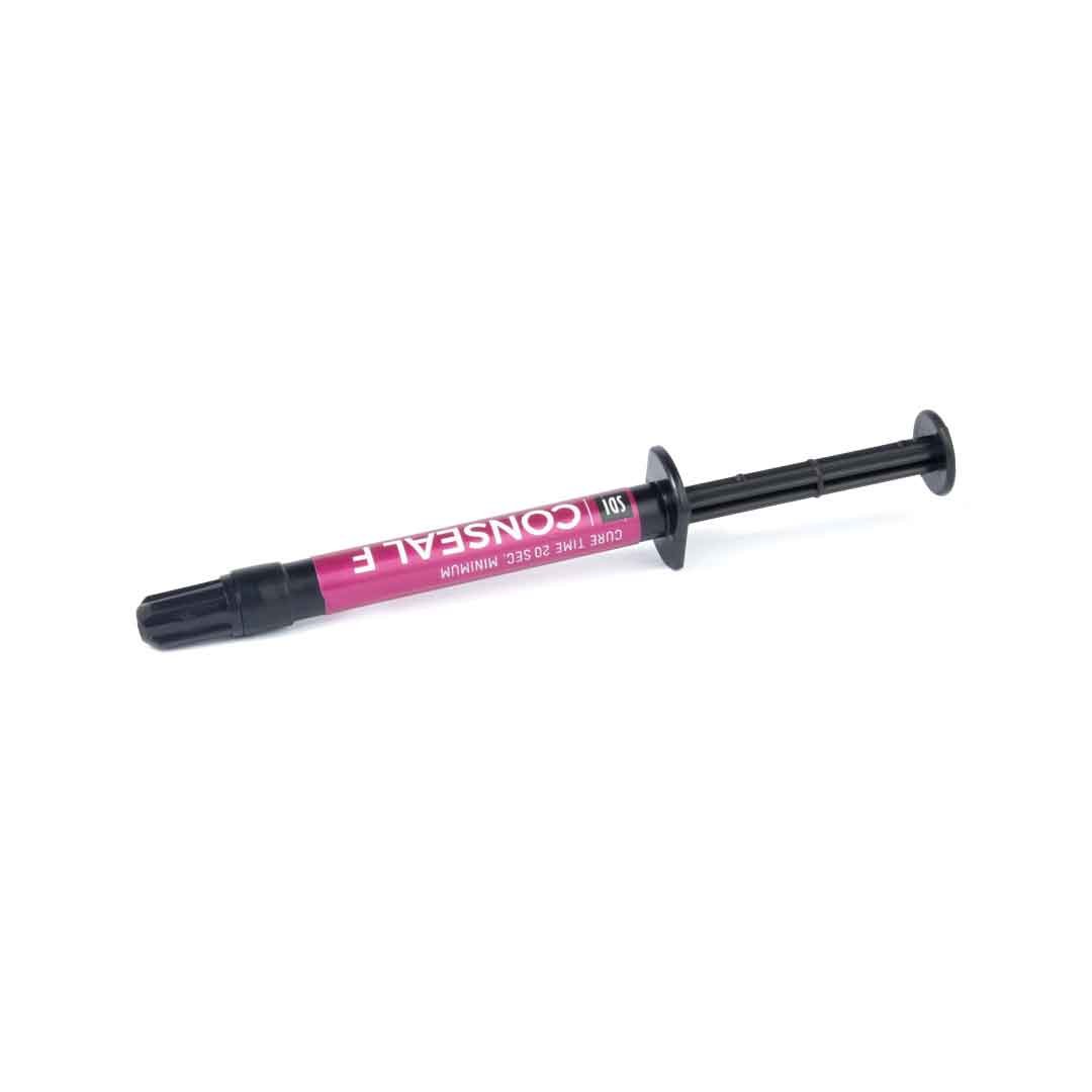Conseal f es un sellante de muy baja viscosidad. La baja viscosidad ideal de Conseal f permite fluir con mayor rapidez y profundidad dentro de las fosas y fisuras preparadas. Una reconocida causa de fracaso en los sellantes de fosas y fisuras es su incapacidad de sellar.