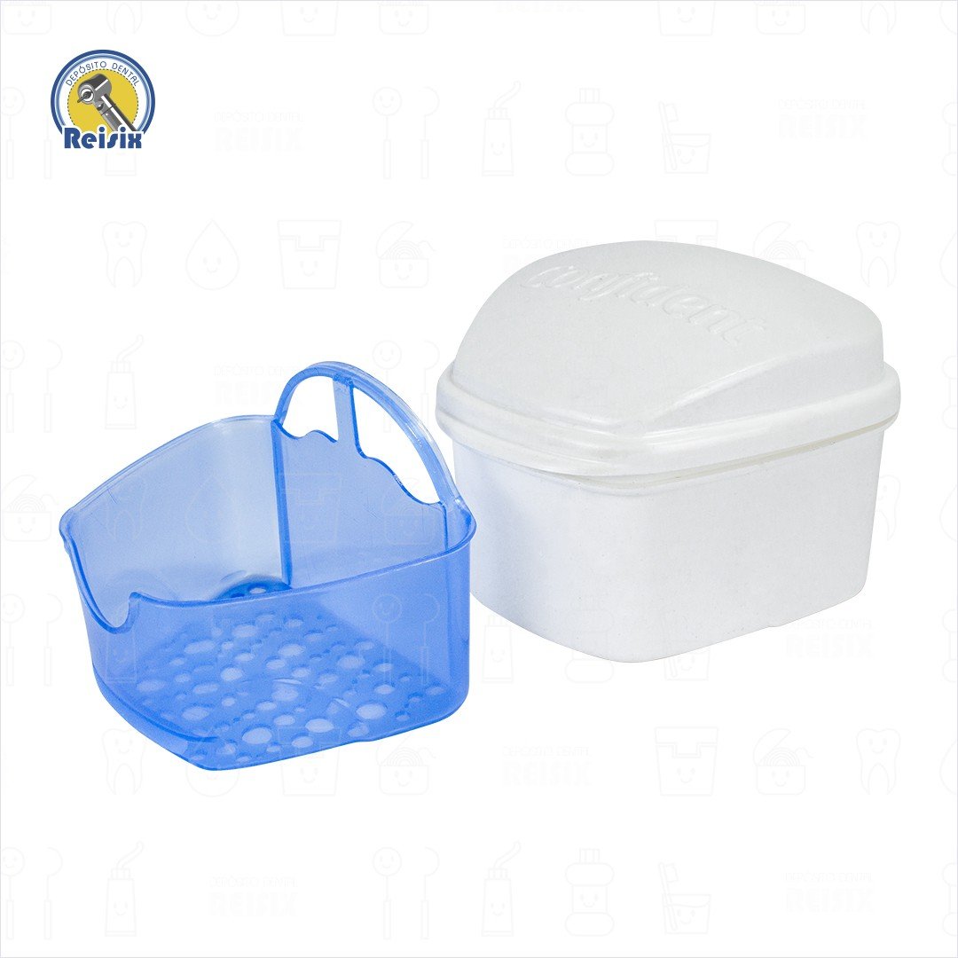 Contenedor discreto y práctico para guardar tu aparato dental durante la noche o el día. Hecho de un plástico antibacterial además incluye una práctica canastilla para su enjuague.