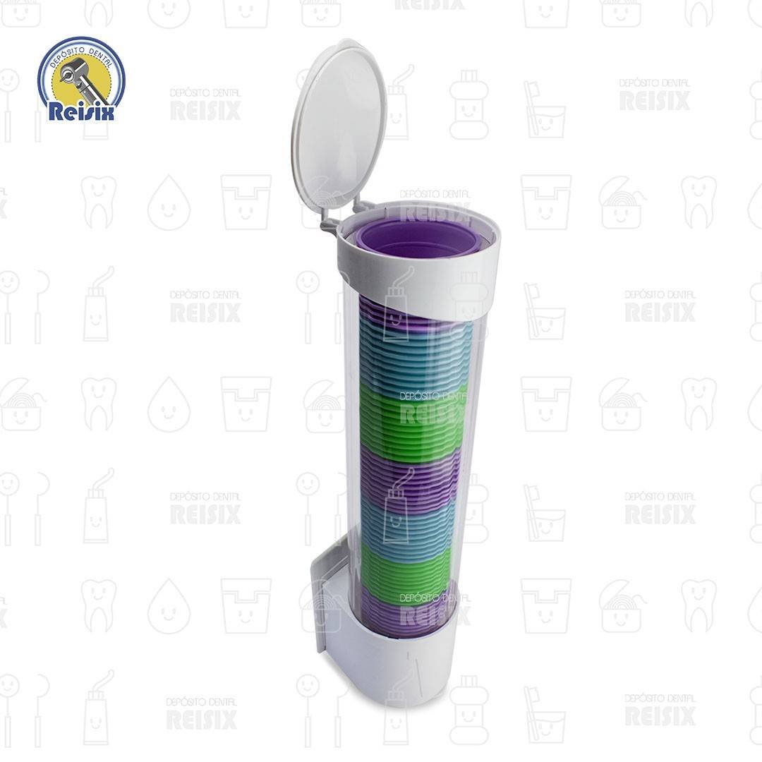 Ideal para almacenar y despachar vasos desechables dentro del consultorio dental. Cuenta con tapa superior e inferior para mayor comodidad al rellenar.