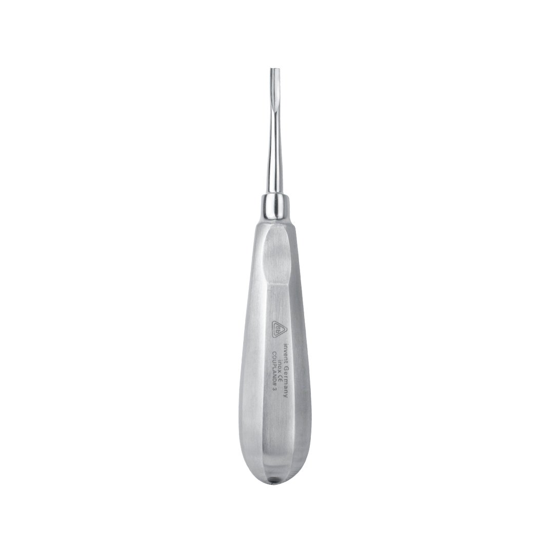 Elevador dental Coupland #3 recto con forma de pera para un mejor agarre, ideal como auxiliar para la luxación y ensanchamiento alveolar, previo al fórceps.