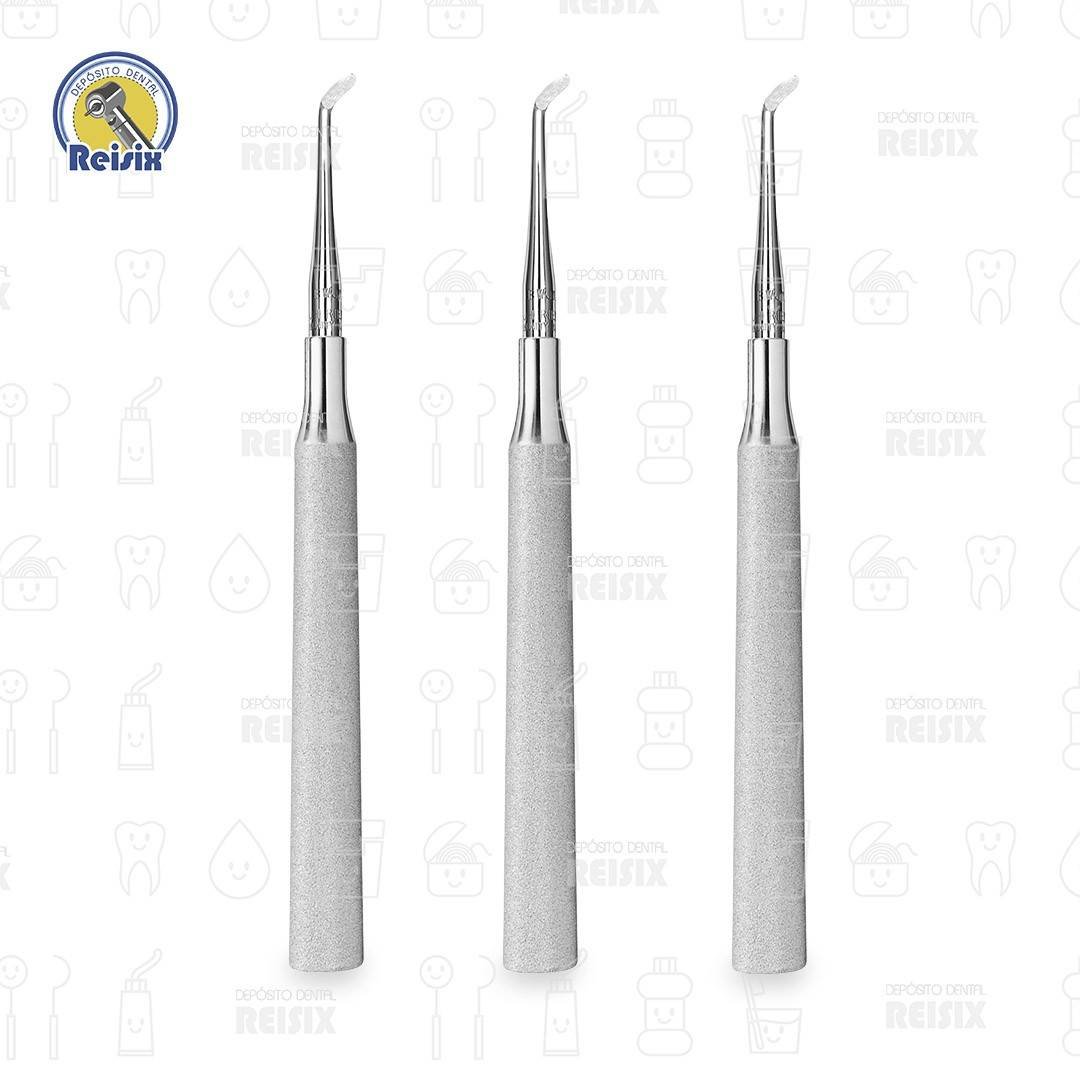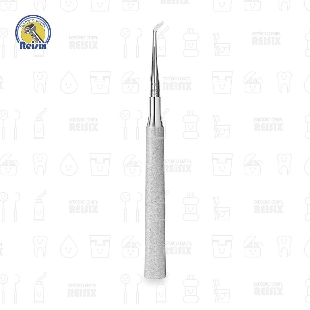 Instrumental fabricado en acero inoxidable de alta calidad, autoclavable, mango delgado ergonómico antideslizante, punta activa angulada.