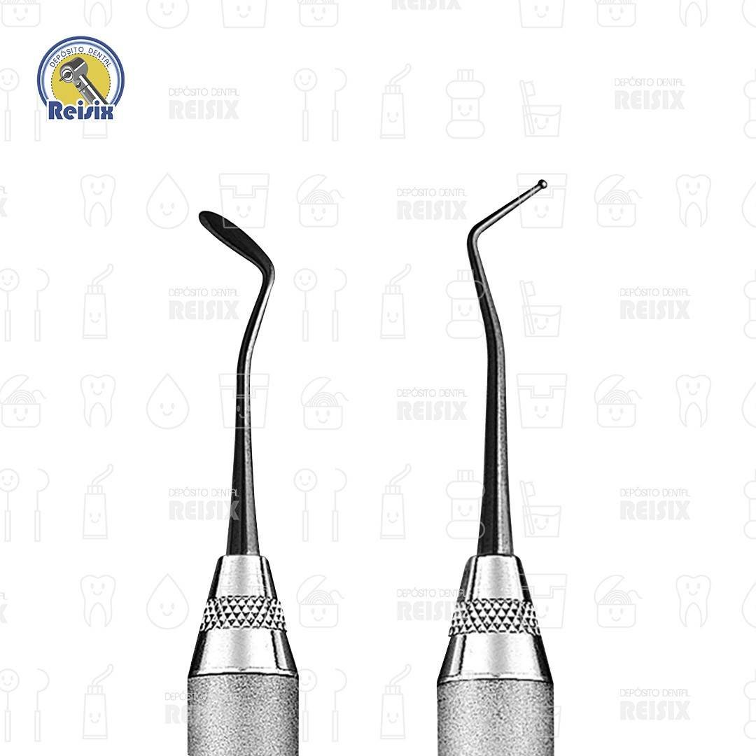 Espátula empleada en pequeñas fosas y fisuras, así como para colocación y condensación con acceso limitado.