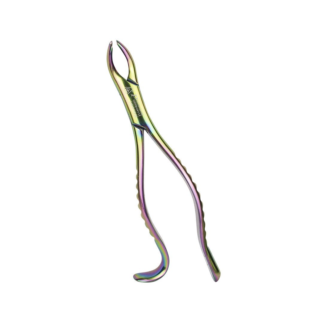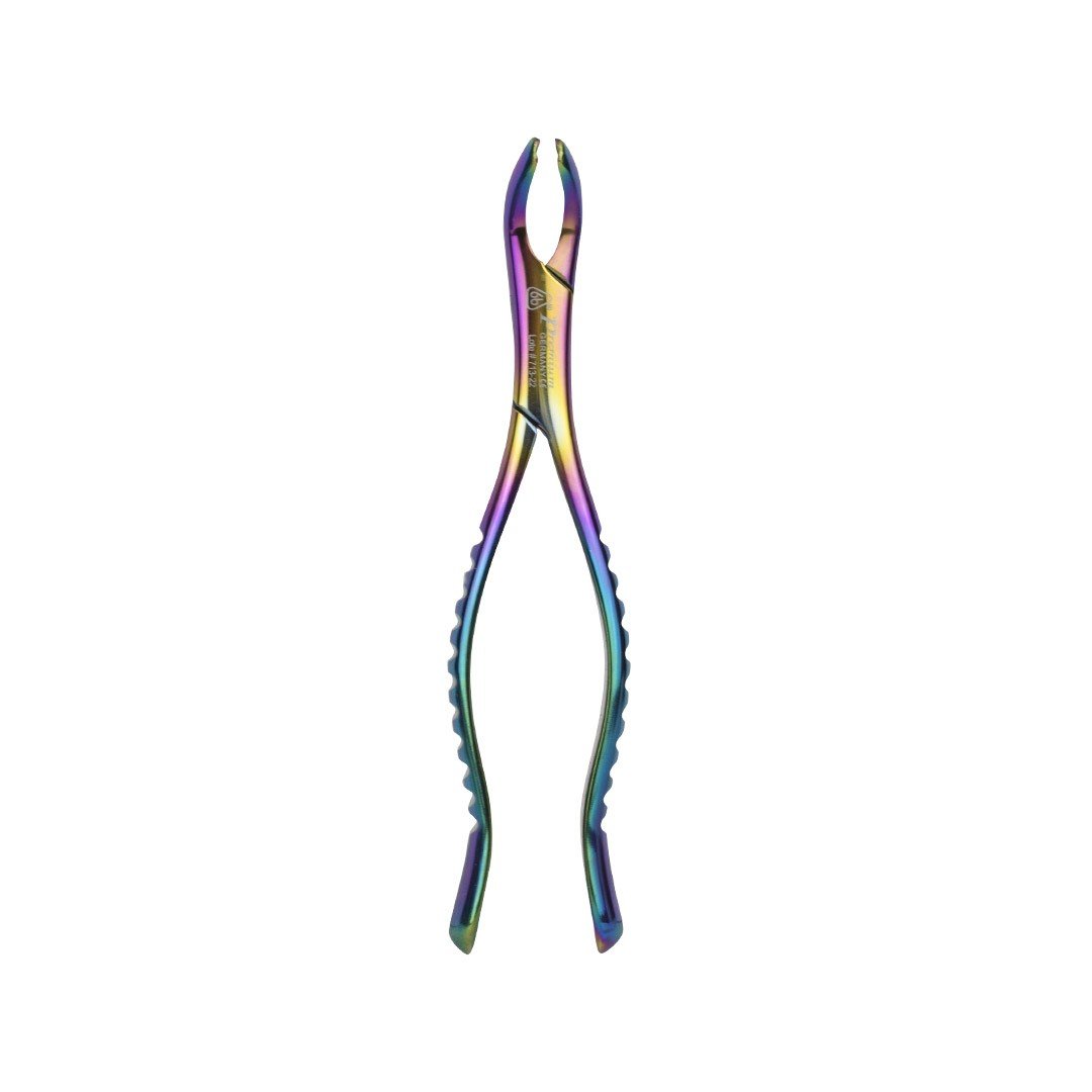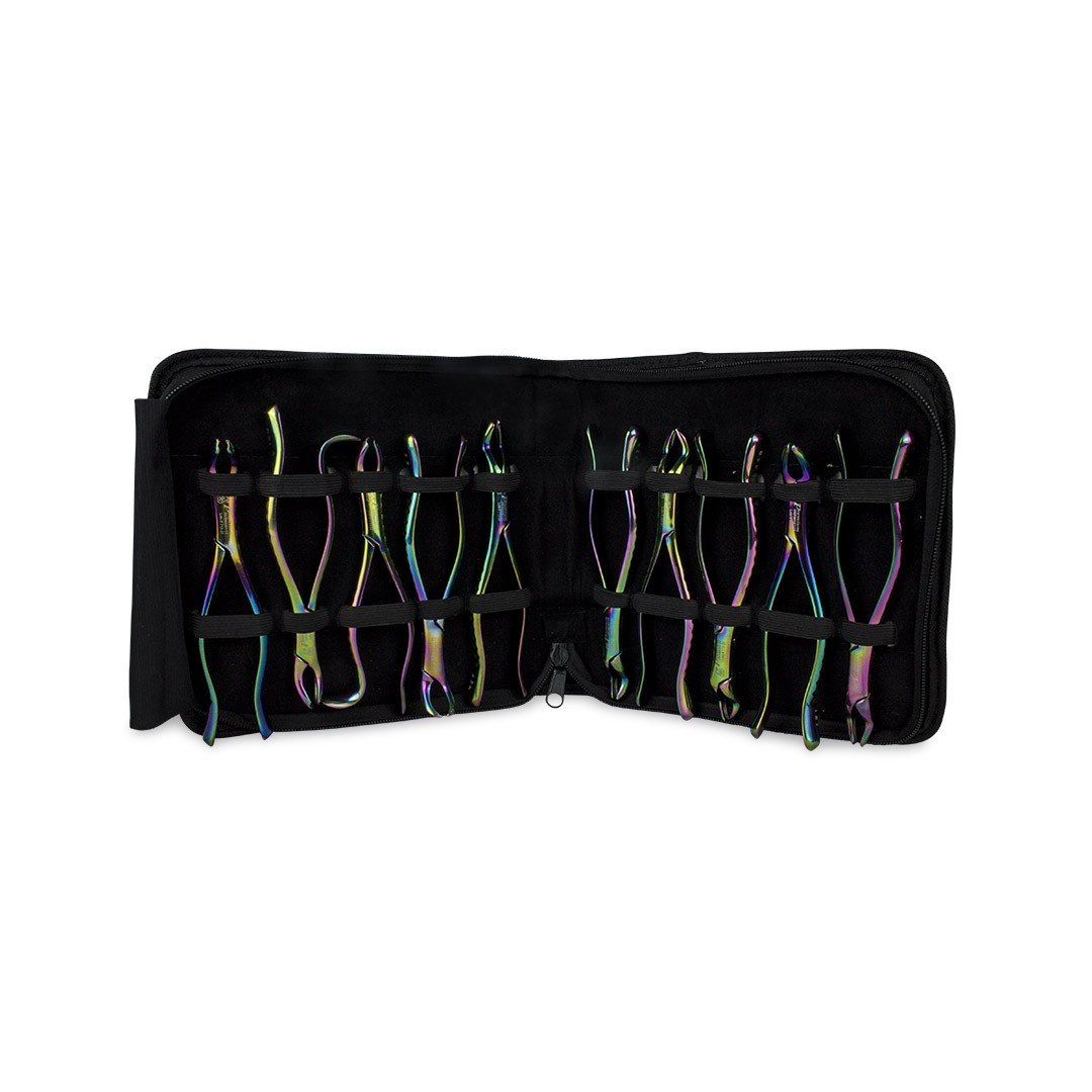 Elegante estuche con 10 fórceps quirúrgicos color azul de línea premium 6B de acero inoxidable. Compuesto por los más utilizados para la extracción dental en exclusivo diseño antideslizante fino cóncavo-convexo.