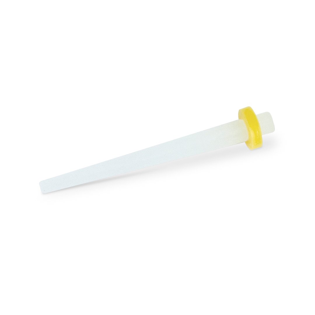 Poste cónico intrarradicular pre-fabricado de fibra de vidrio radiopaco, utilizado como soporte de restauraciones y coronas protésicas, módulo de elasticidad similar al de la dentina, lo cual implica menor riego de fractura radicular, la forma del poste sigue la anatomía del conducto, de fácil remoción, bajo riesgo de fractura radicular, versatilidad en tamaños, traduciendo en ahorro del tiempo clínico y costos de laboratorio.
