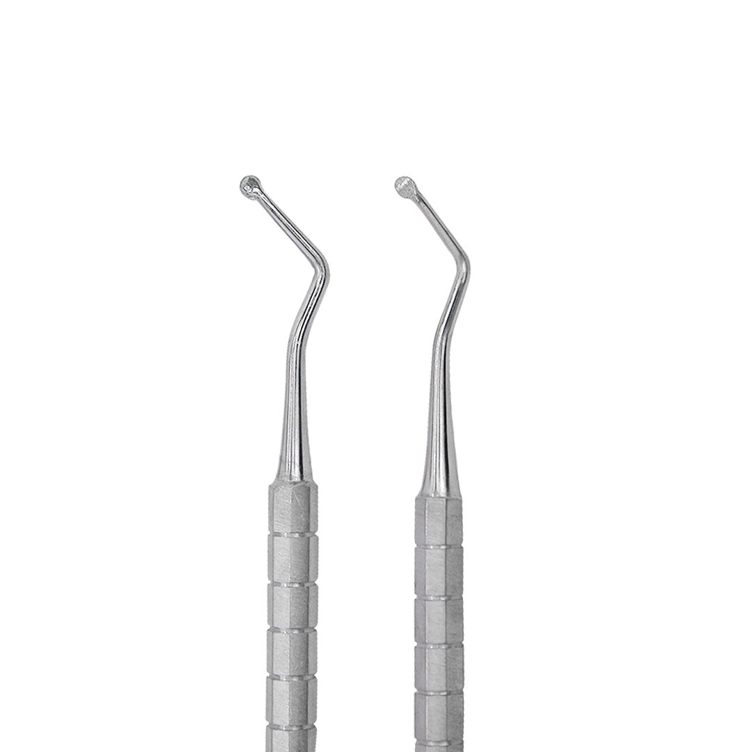Instrumental de acero inoxidable de alta calidad, cuenta con un vástago de longitud extendida para facilitar el acceso y la extracción de la dentina cariada
