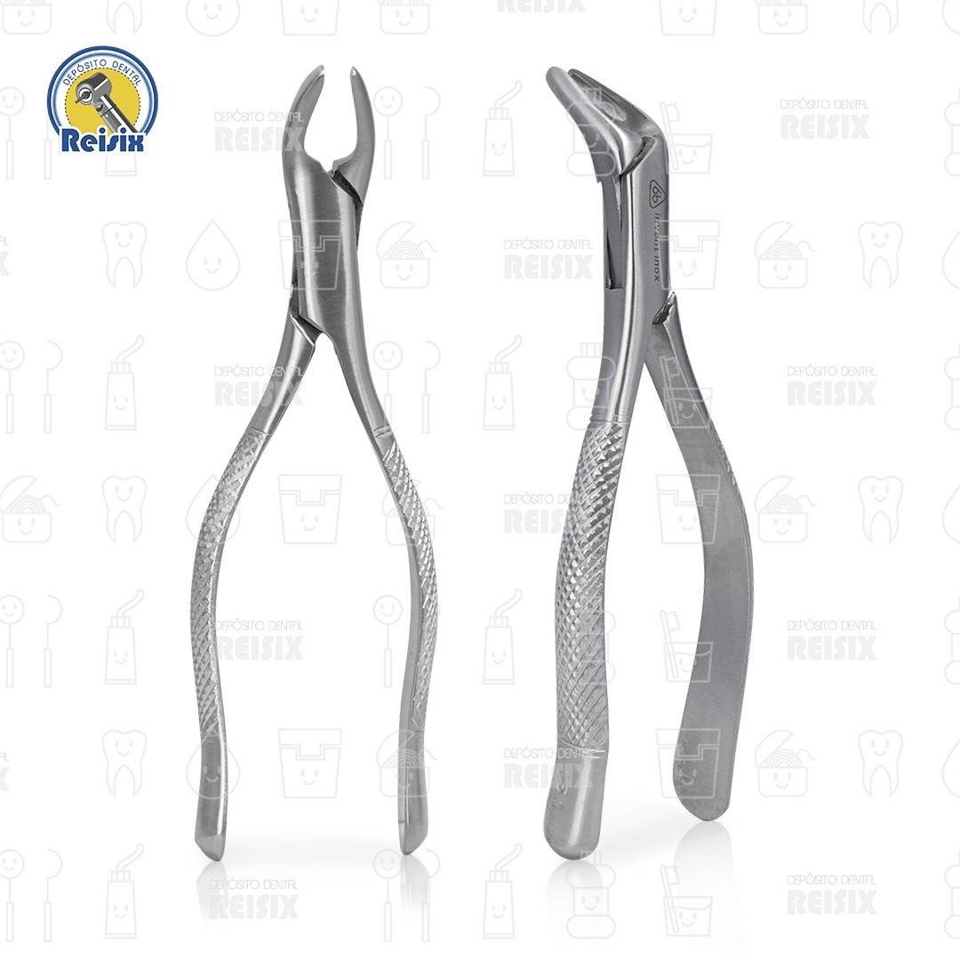 Instrumental fabricado en acero inoxidable de alta calidad, autoclavable, forma anatómica que permite una correcta prensión adaptándose al cuello del diente, actuando como palanca sujeta a la pieza dentaria, presenta estrías o texturas en la superficie para asegurar el agarre y evitar deslizamiento del diente, mediante movimientos de impulsión, laterales, y de tracción, se logra la extracción dentaria.