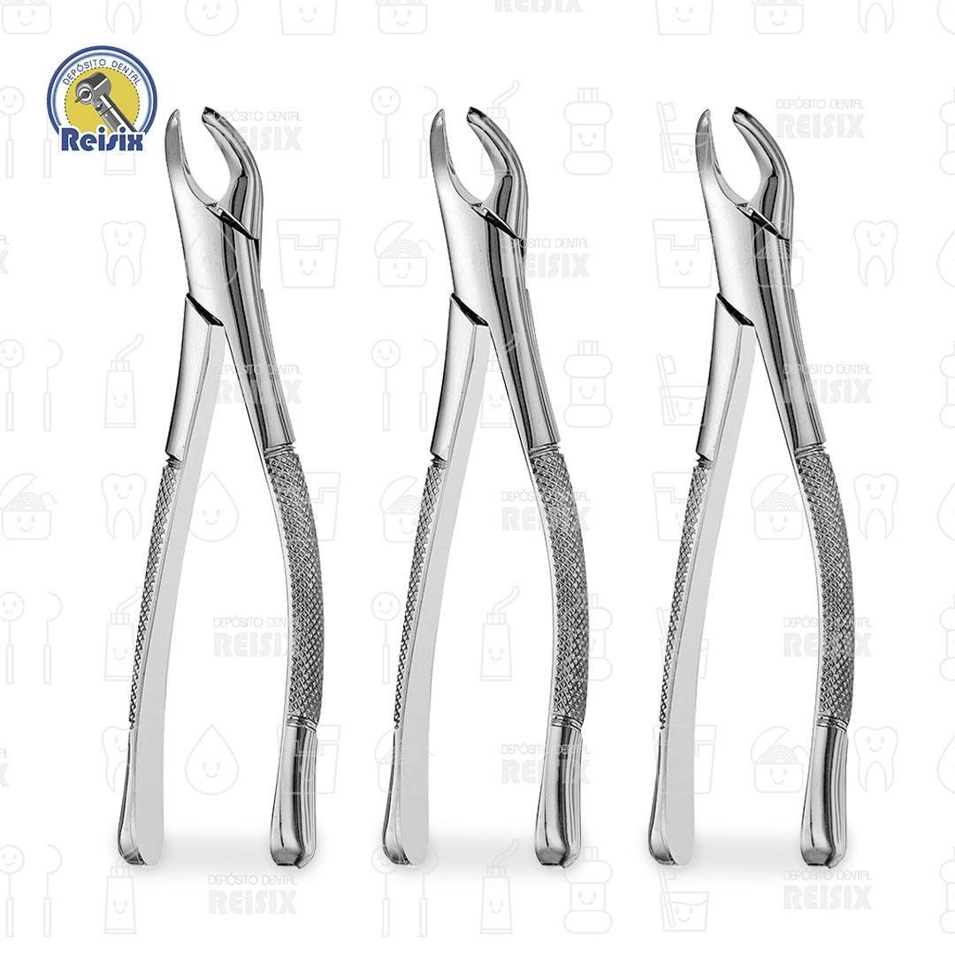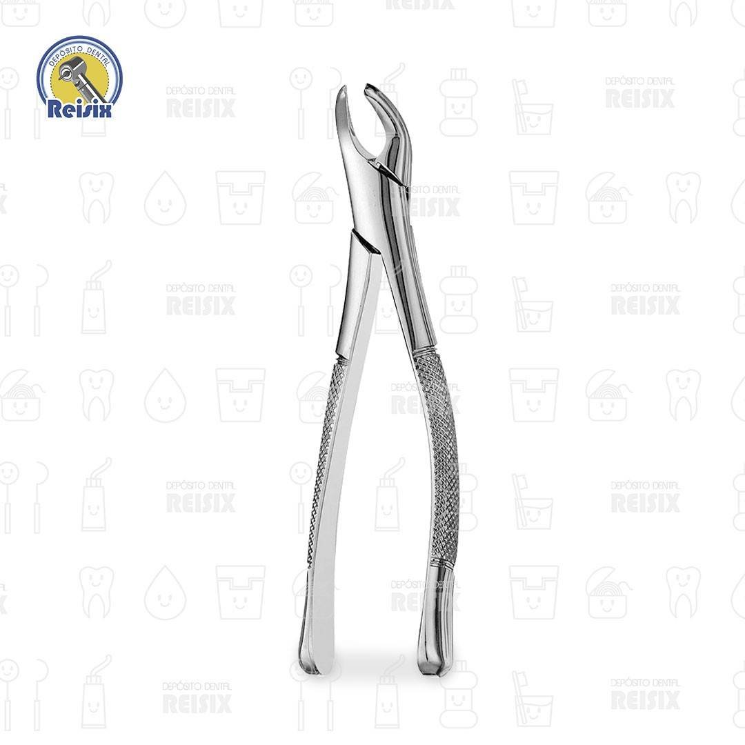 Instrumental fabricado en acero inoxidable, autoclavable, terminados con una bisagra de tijera para distribuir igualmente las fuerzas a lo largo del instrumento. Pinzas universales utilizadas para extraer piezas dentales.