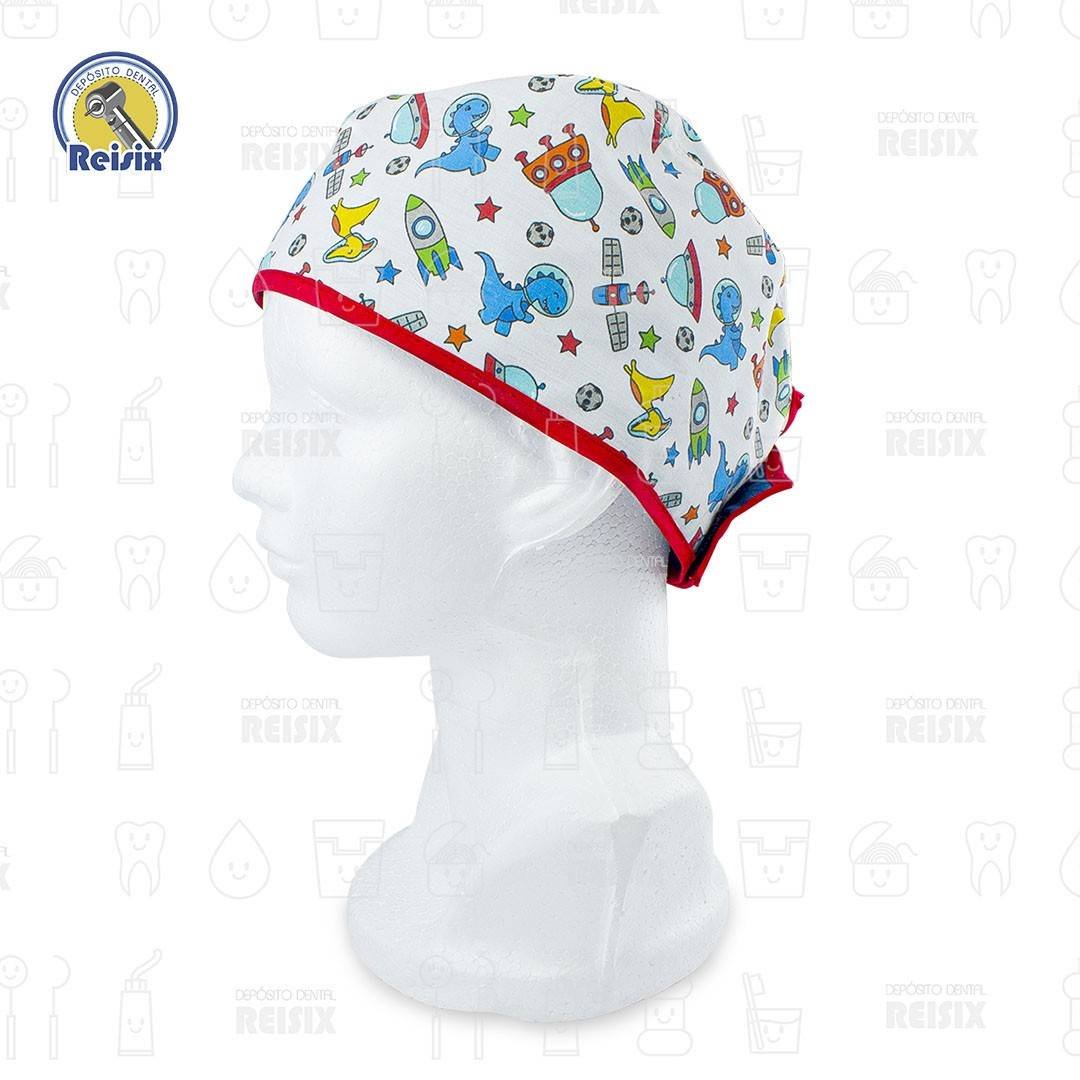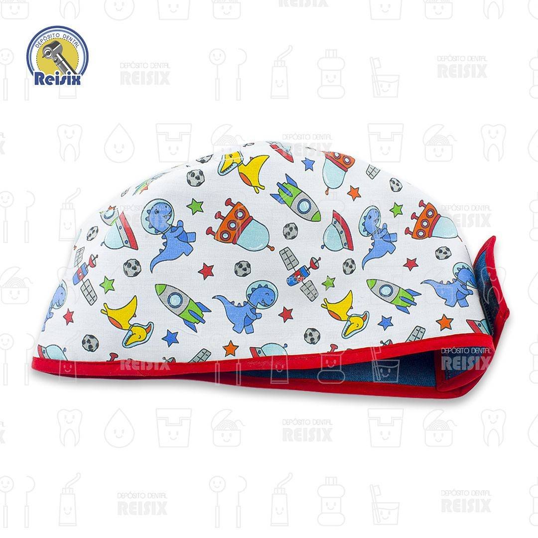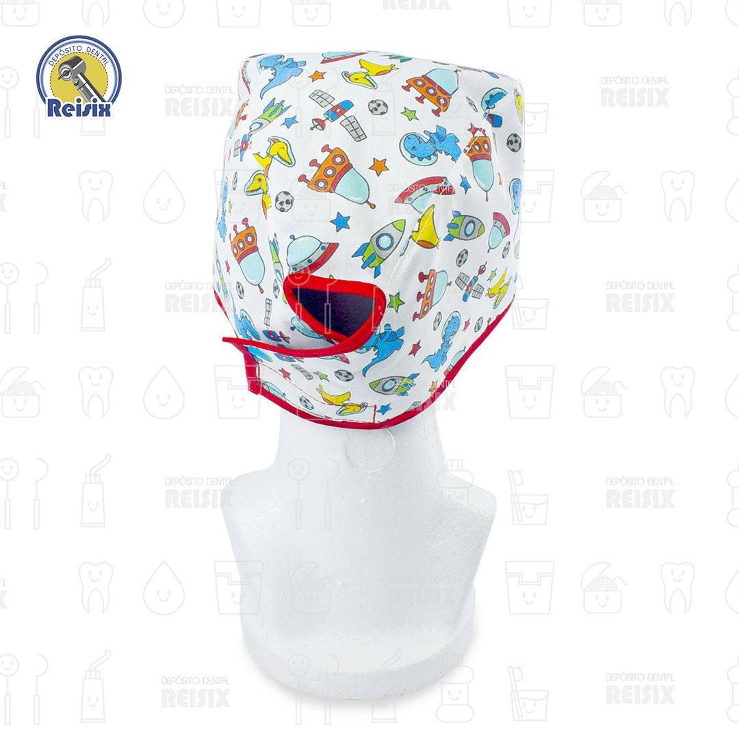 Gorros de tela estampados con diferentes diseños como barrera de protección para el odontólogo en la práctica clínica.