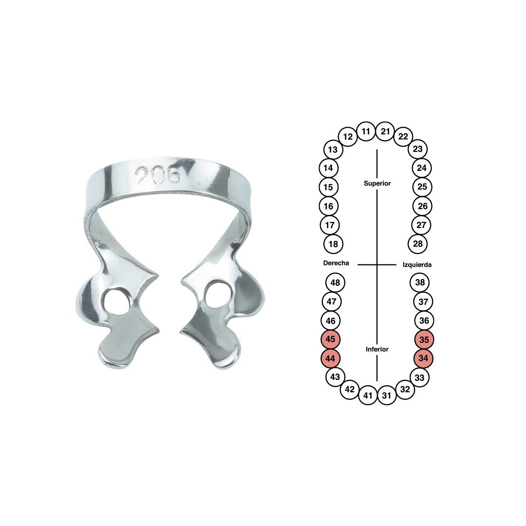 Grapa no. 206 marca 6B hecha de acero inoxidable, con forma anatómica para el diente indicado.