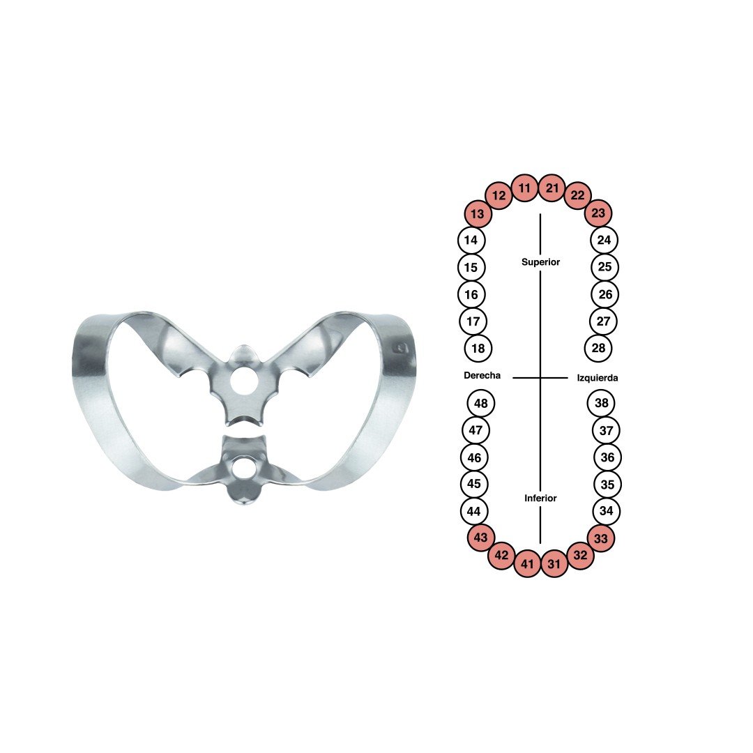 Grapa no.9 marca 6B, abrazadera indicada para el aislamiento absoluto en especial de dientes anteriores.