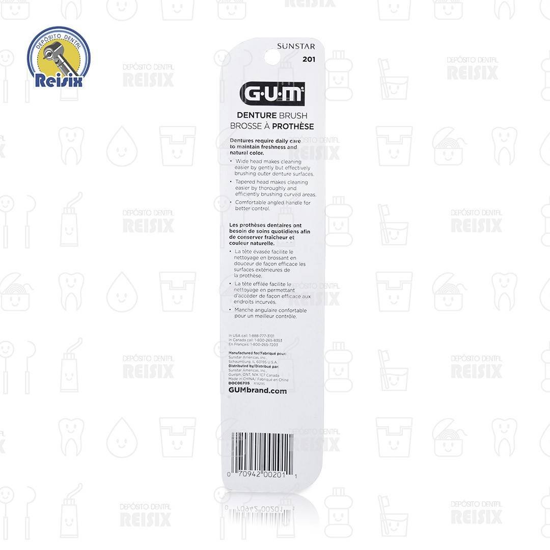 Diseño especial de Nailon, posee filamentos planos, y cónicos, mango angulado con empuñadura mullida que brinda mayor control durante el cepillado. El sarro y los restos de los alimentos se liberan fácilmente de los dientes y la prótesis al tiempo que los filamentos de nailon redondeados evitan que se produzcan arañazos en las prótesis.