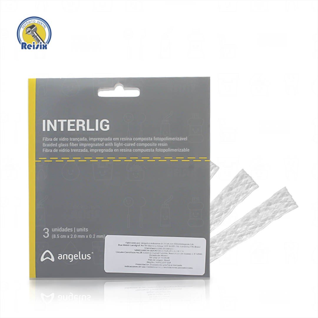 Fibra de vidrio de Angelus Interlig indicada para trabajos de ferulización, para confecciones de prótesis adhesivas inmediatas y para refuerzo de restauraciones extensas directas en resina compuesta.