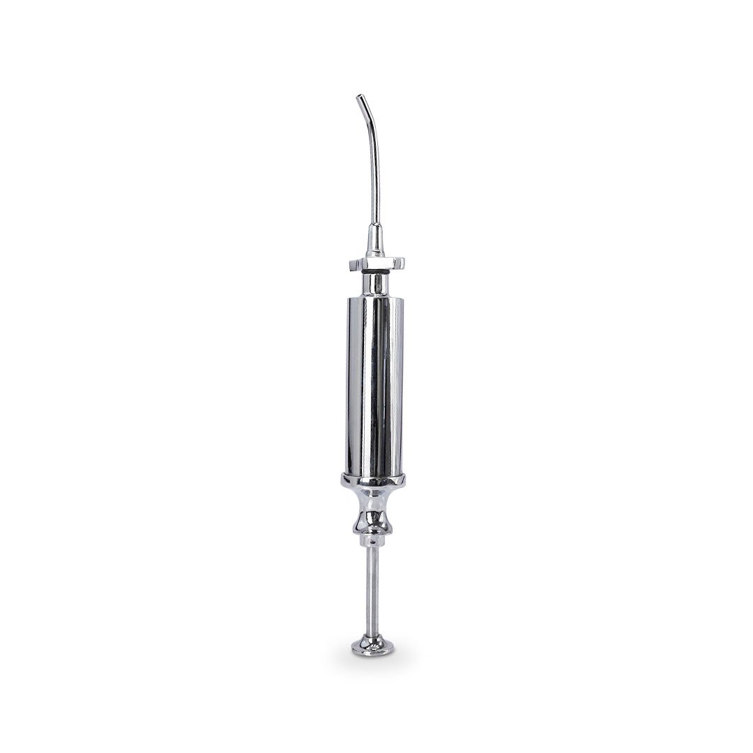 Jeringa metálica auxiliar para irrigar durante el tratamiento de conductos.