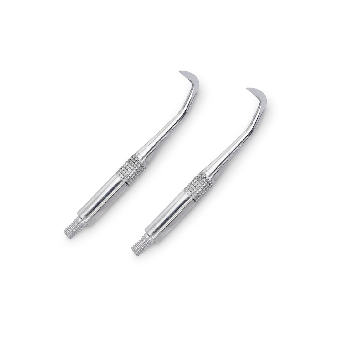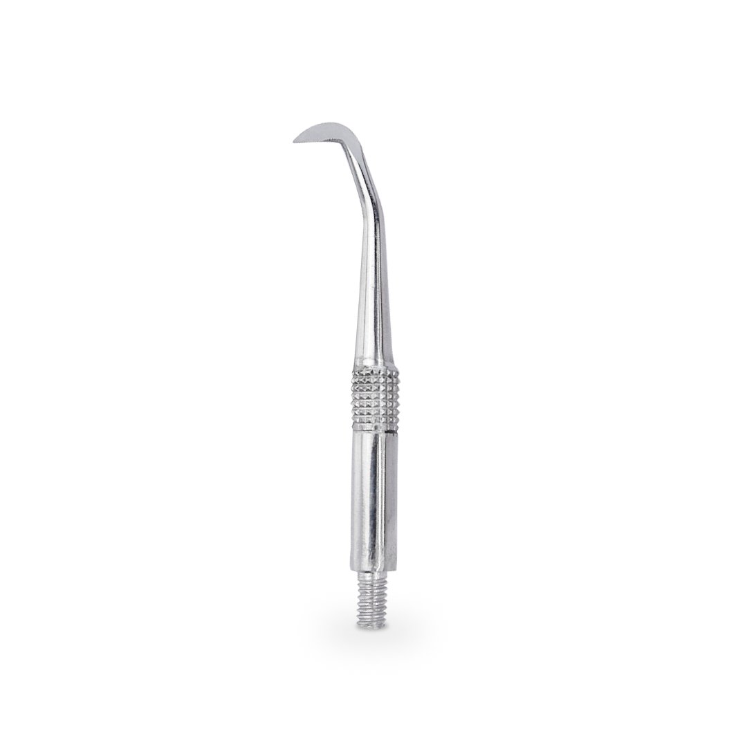 Instrumental fabricado en acero inoxidable de alta calidad, autoclavable, doble punta activa, angulada, mango largo, barril metálico en el cuerpo que le proporciona peso. Ideal para la remoción atraumática de las prótesis fijas definitivas o temporales.