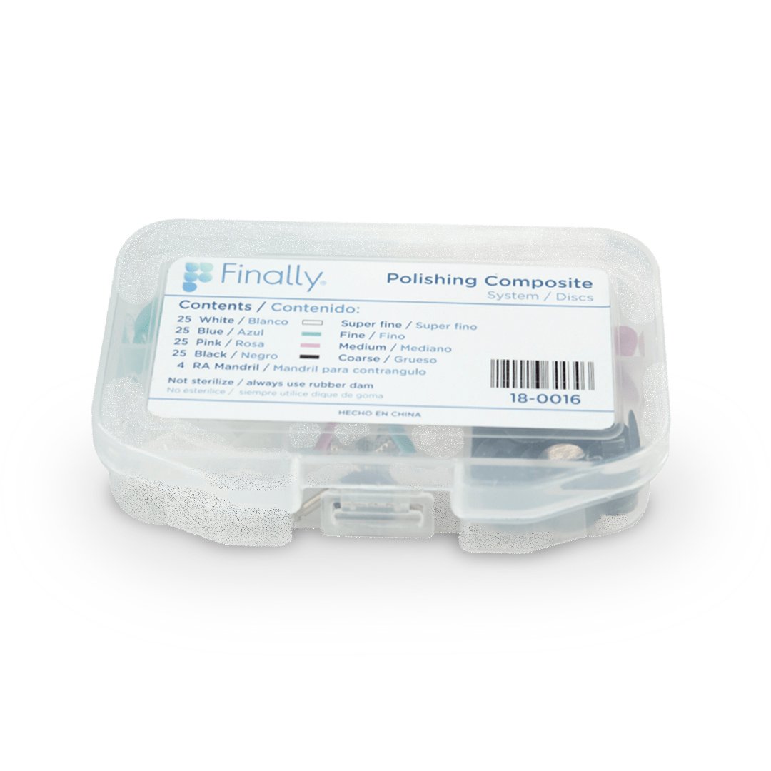 El kit Finally Sistema de discos para pulido con 40 discos y 2 mandriles es una solución completa para pulir y restaurar dientes de manera eficiente y profesional. El kit incluye una variedad de discos de diferentes grosores, lo que lo hace ideal para una amplia gama de aplicaciones dentales.
