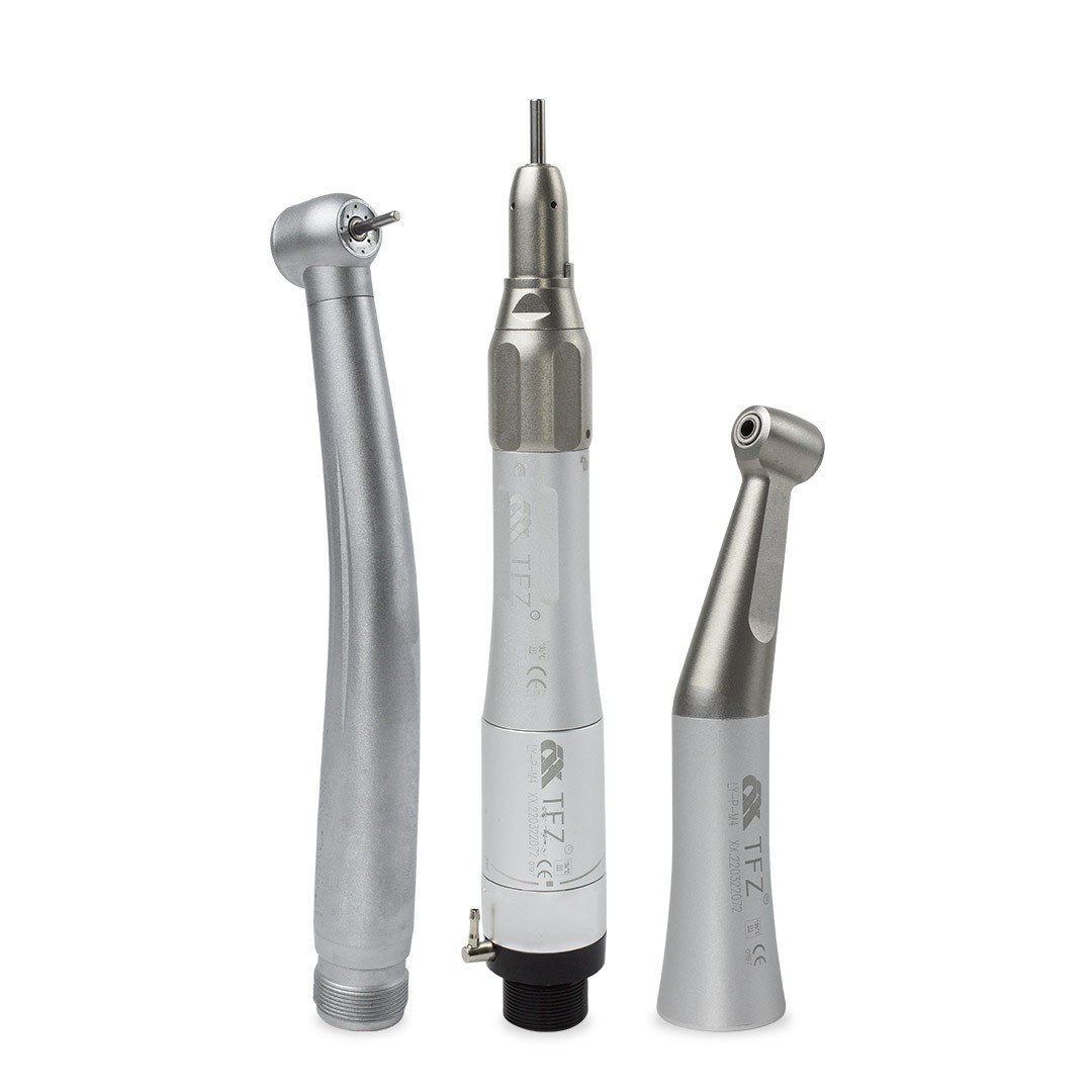 Kit de piezas de mano con pieza de alta 8 irrigación y pieza de baja tipo E (motor, recta y contrángulo con push button e irrigación interna).
