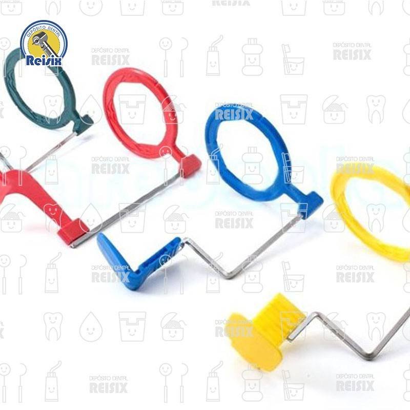 Posicionador de radiografías intraorales utilizado para mejorar precisión y rapidez en la toma de imágenes de rayos X dental.