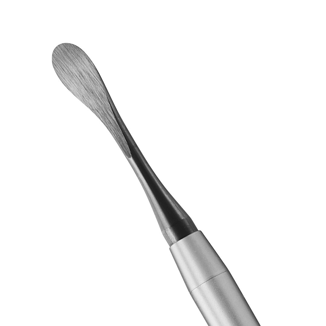 El Legra/Periostotomo Molt 9 Black Line de Hu-Friedy es un instrumento dental utilizado para reflejar y retraer el periostio después de las incisiones del tejido gingival. Está fabricado en acero inoxidable de alta calidad y cuenta con una hoja ancha y afilada, una superficie no reflectante y un contraste mejorado entre el tejido y el elevador. El mango es delgado, ergonómico y antideslizante, lo que facilita su uso.