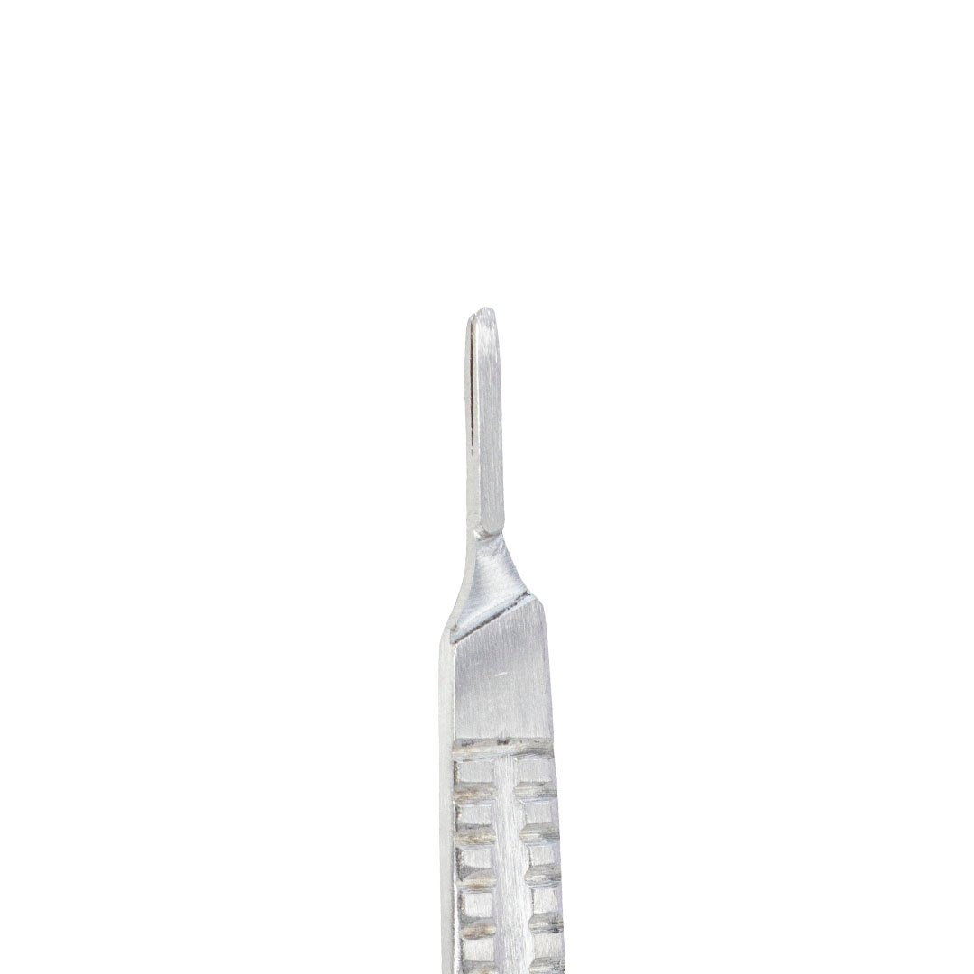 Mango o cuerpo del bisturí, utilizado para poder sujetar correctamente el bisturí, y así poder realizar el corte o incisión que debamos hacer, requiere hojas de bisturí del número 10 al 15, 40 y 42.