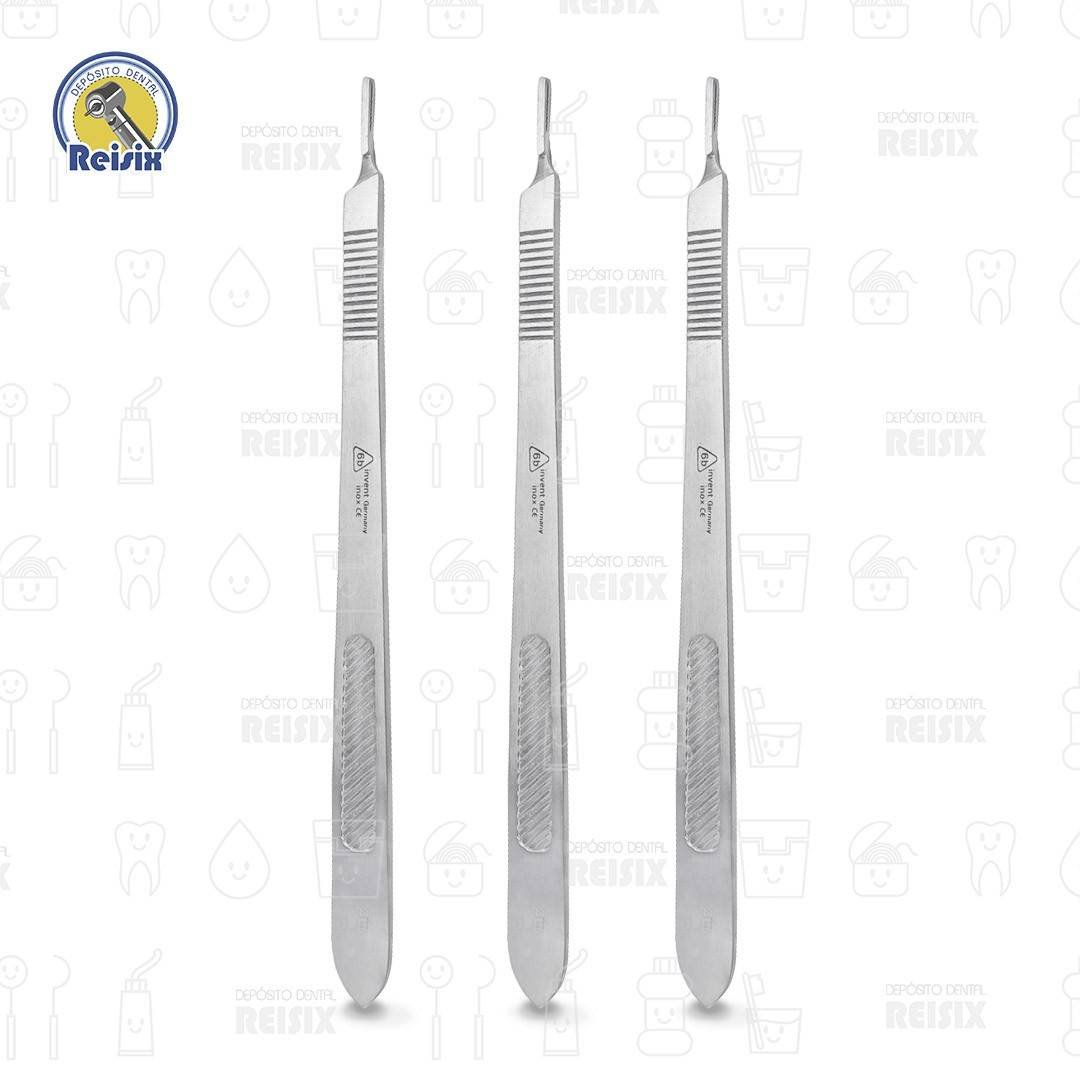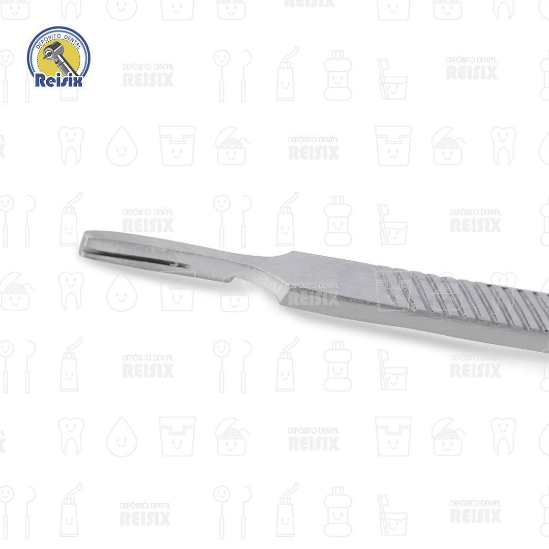 Mango o cuerpo del bisturí, utilizado para poder sujetar correctamente el bisturí, y así poder realizar el corte o incisión que debamos hacer, requiere hojas de bisturí del número 10 al 15, 40 y 42.