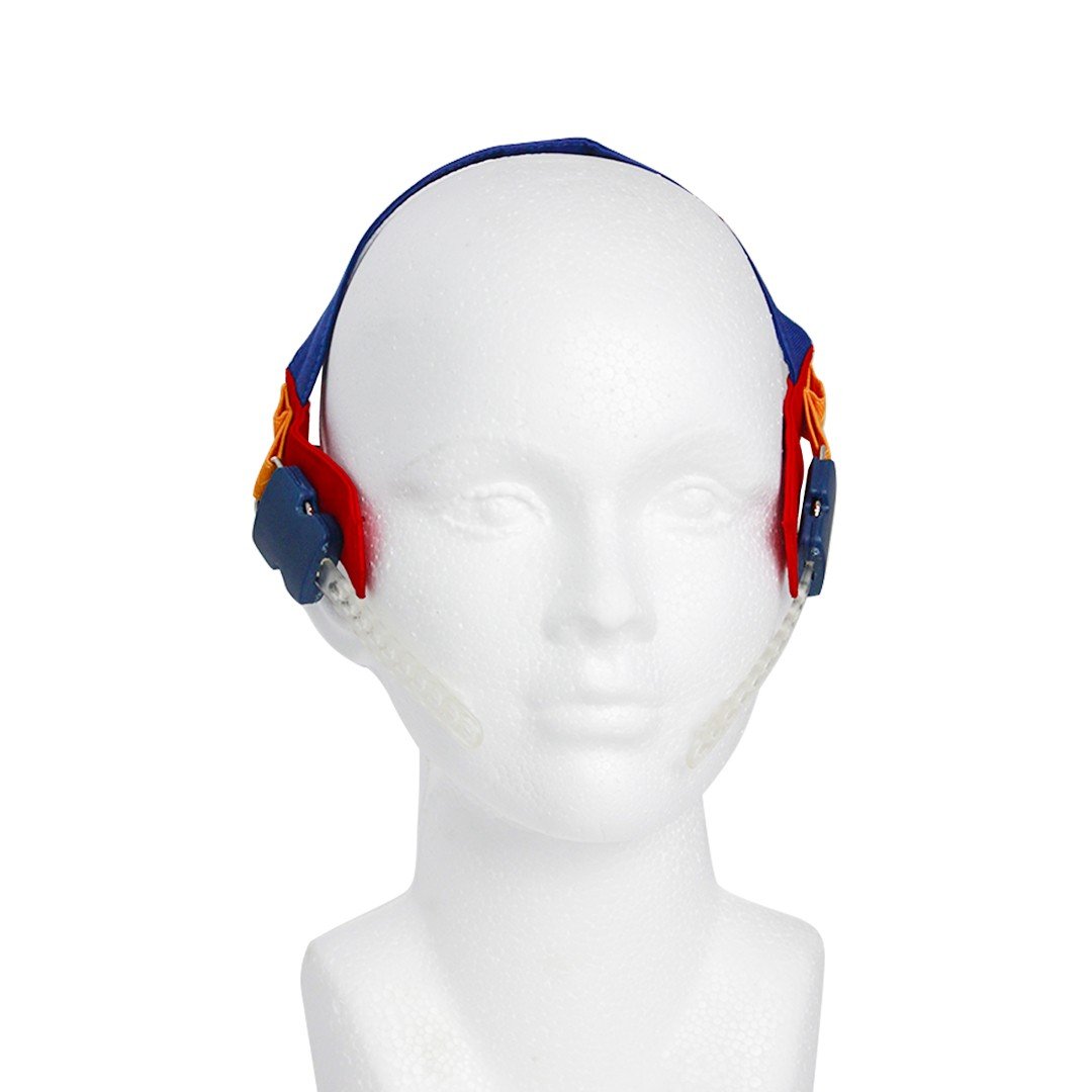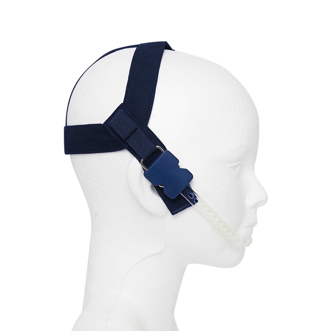 Mentonera high pull con módulo de seguridad y escala de fuerza DentiCast. Está indicado para el tratamiento preventivo de la mordida abierta Clase III de Angle, cuando existe tendencia de mordida cruzada. Con cintas de poliéster y resortes resistentes para el control del crecimiento mandibular. Incluye: 2 resortes ligeros ajustables y headgear de poliéster.