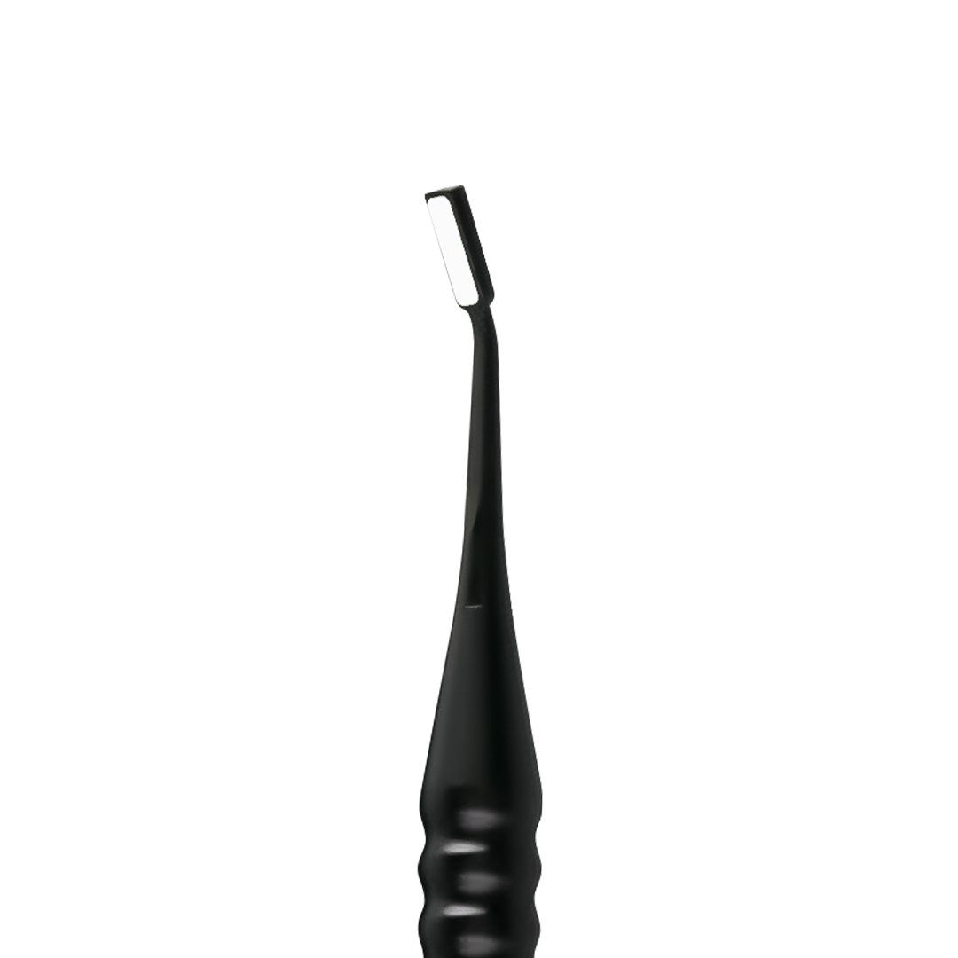 El mango esta fabricado en una aleación de aluminio extremadamente resistente al desgaste y esterilizable en autoclave con un acabado en negro intenso, que elimina cualquier reflejo de luz interferencial, esencial para el observador en procedimientos diagnósticos y terapéuticos con la ayuda de lupas y microscopios.