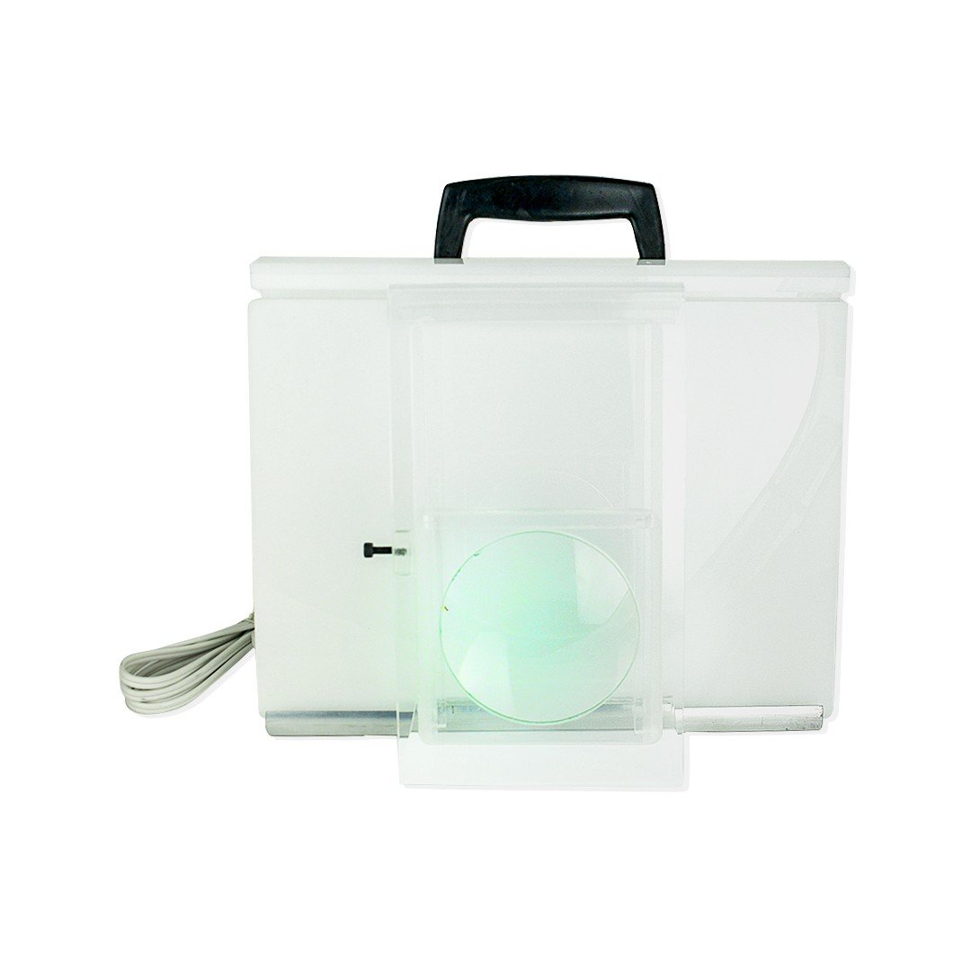 Negatoscopio con lupa Borgatta es un dispositivo que permite ver las radiografías a través de un sistema de iluminación por transparencia del negativo colocado ante un vidrio esmerilado y con el plus de la lupa para tener una mejor visión en los detalles tomados en la radiografía.