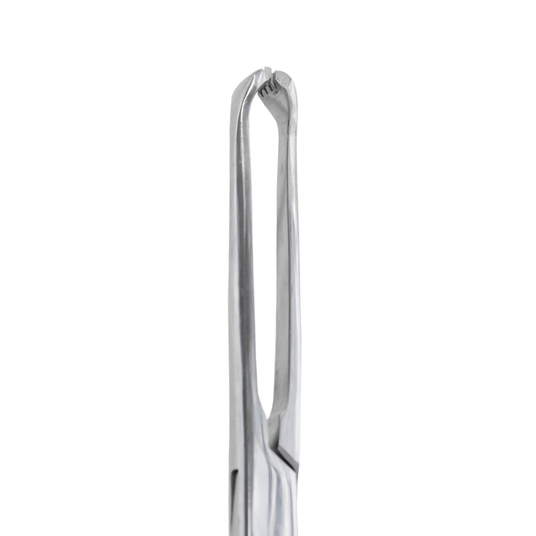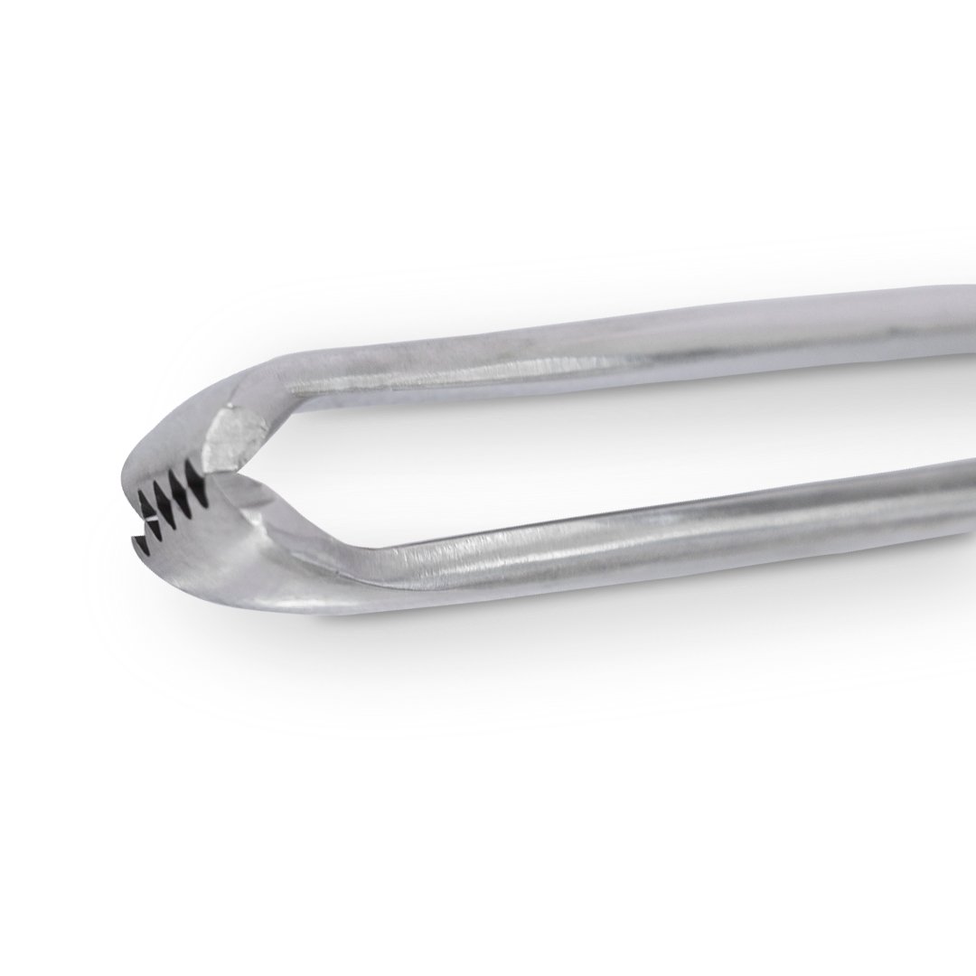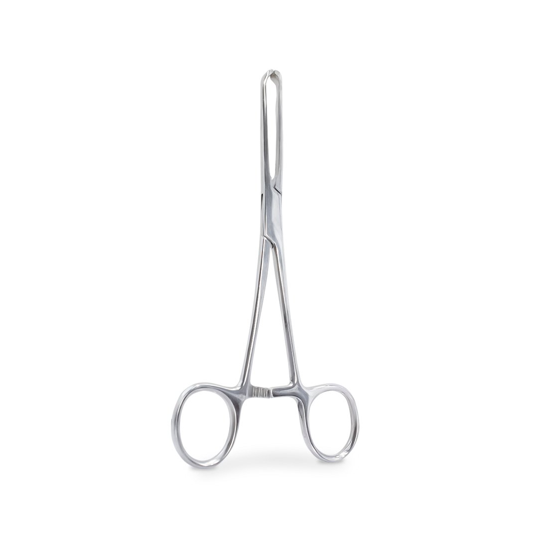 Instrumental fabricado en acero inoxidable de alta calidad, autoclavable, ramas curvas con dientes dispuestos transversalmente en la punta, sierre tipo cremallera, utilizadas para sujetar tejidos de forma firme pero segura, con presión moderada, para realizar contención de una hemorragia (hemostasia por presión).