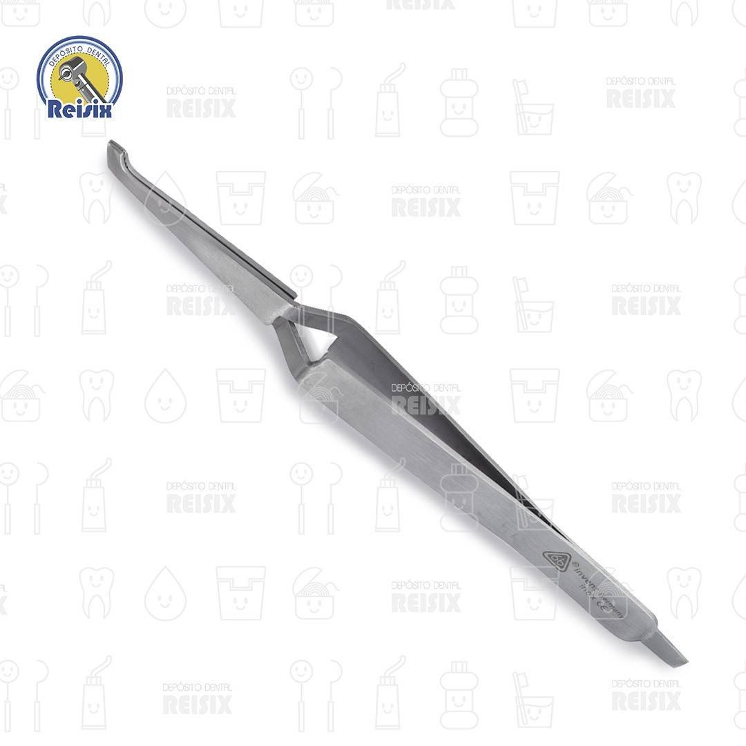 Instrumento fabricado en acero inoxidable de alta calidad, autoclavable, punta ranurada. Posee un alineador en la parte trasera para la correcta posición en el diente. Utilizado para colocar brackets y tubos