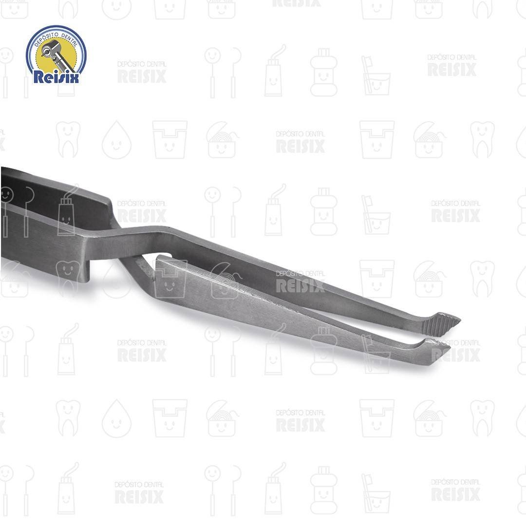 Pinza utilizada para la colocación de brackets y tubos, posee un alineador en la parte posterior para la correcta posición en el diente.