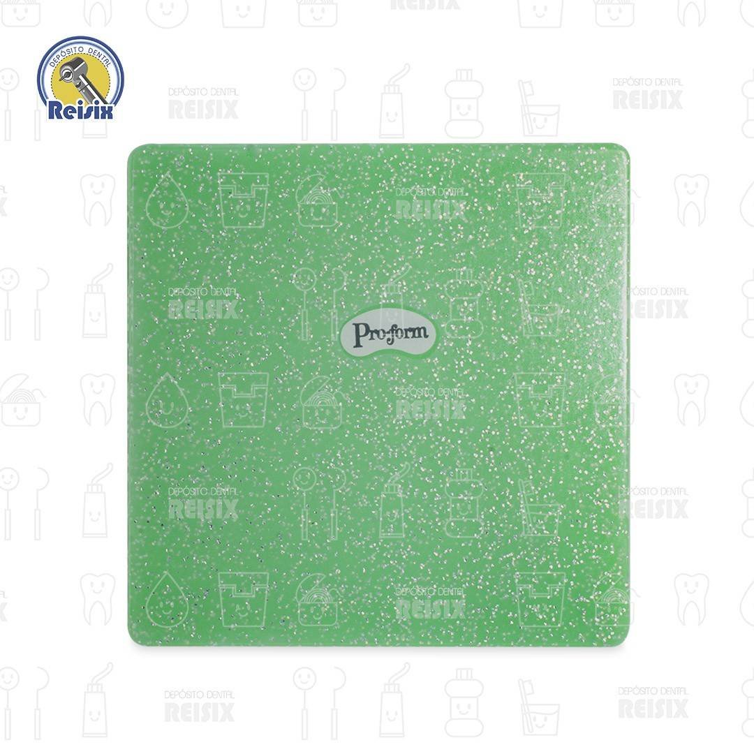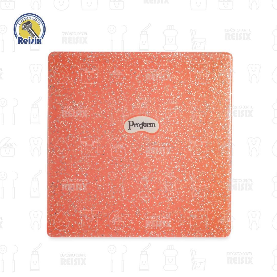 El diseño de Glitter añade el toque ideal de brillo a la línea, que ofrece protección, asequibilidad y estilo. Por la laminación de dos capas suaves juntas, el material tiene una excelente resistencia a la tracción. Todas estas características hacen de Pro-Form el protector bucal de elección para los protectores bucales hechos a medida.