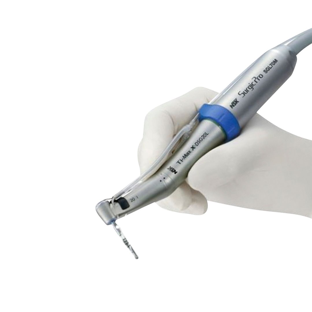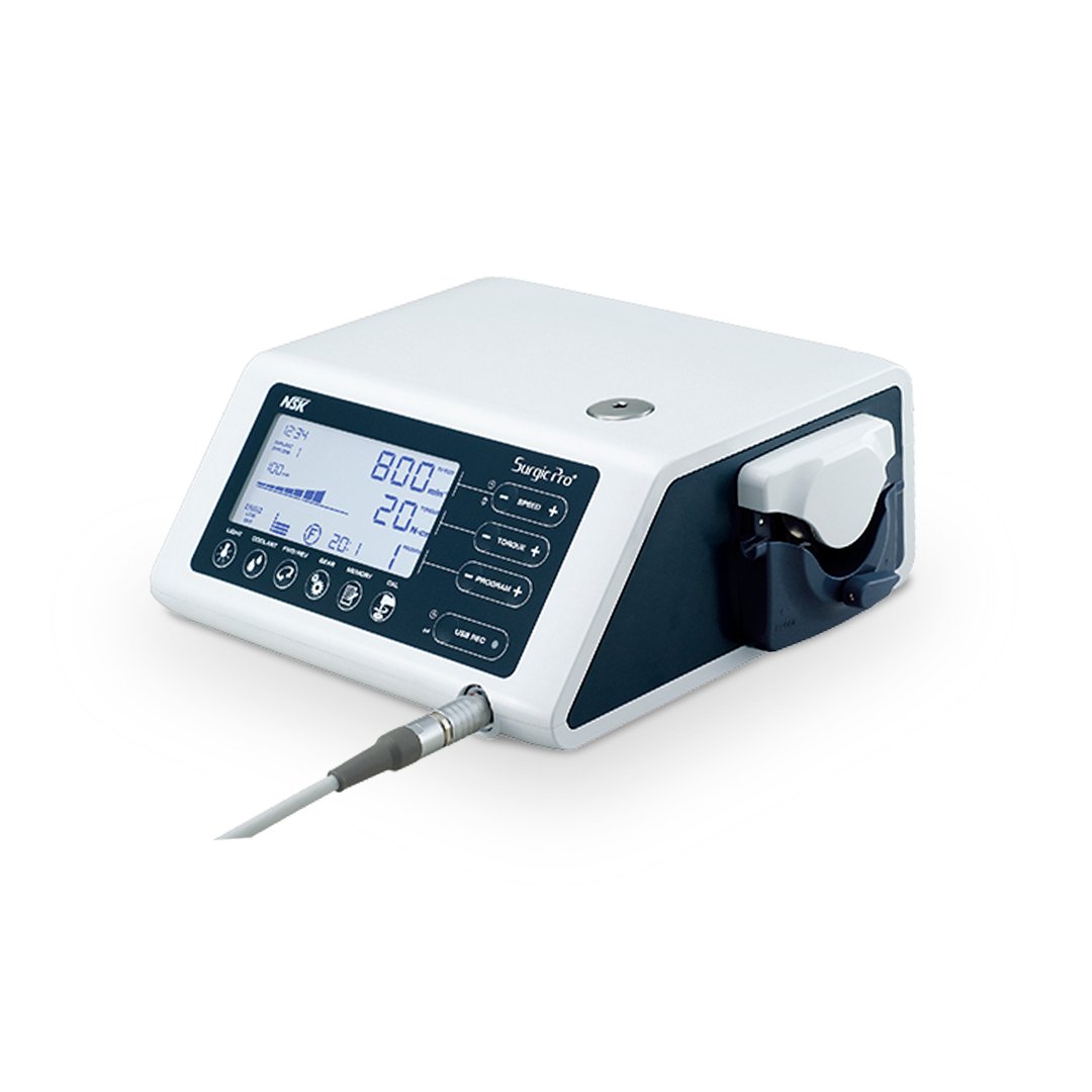 Surgic Pro LED de NSK, es un equipo para cirugía oral e implantes, con luz LED y con unidad de control sin almacenamiento de datos. Más corto, más ligero, más potente Excelente rendimiento y consistencia en la práctica clínica.