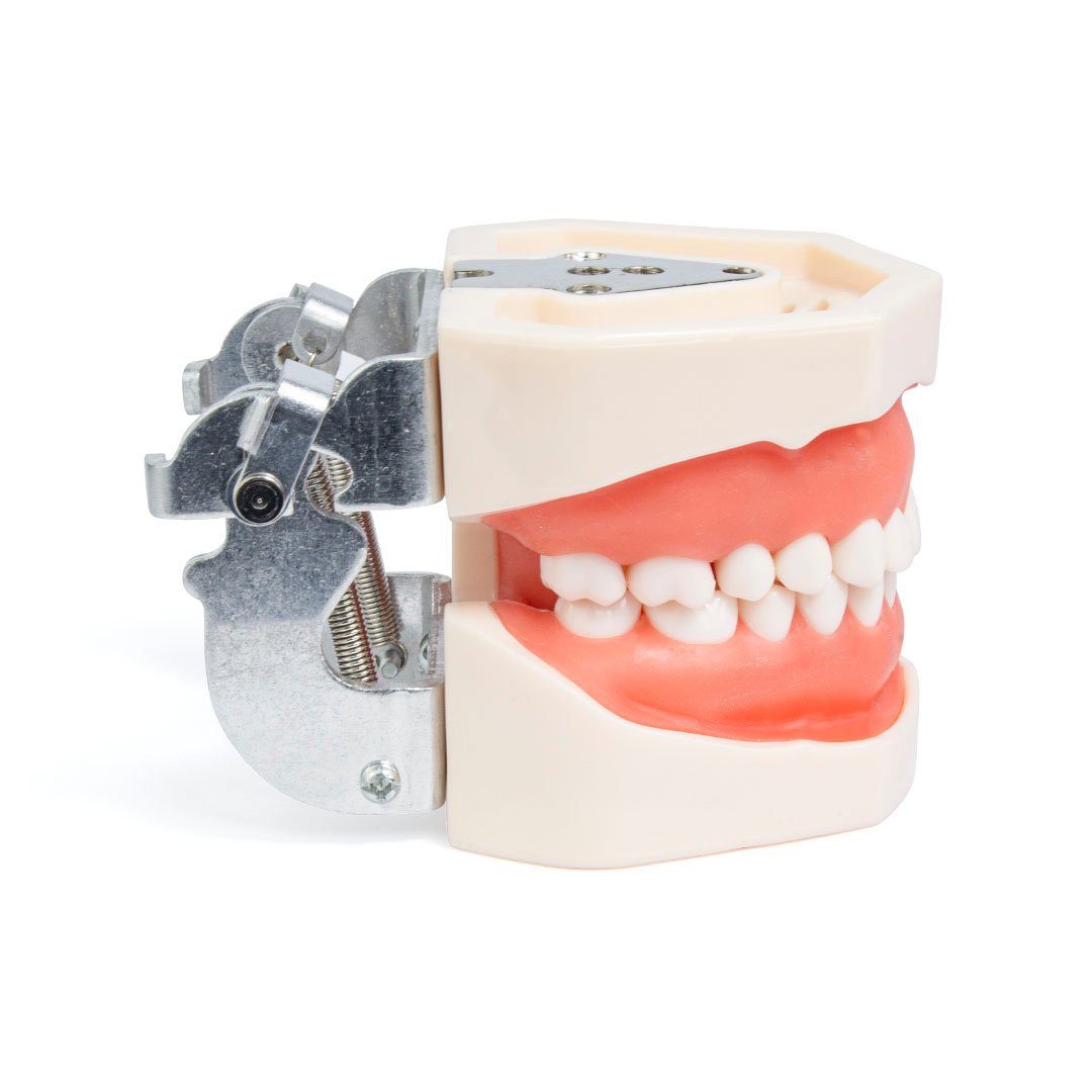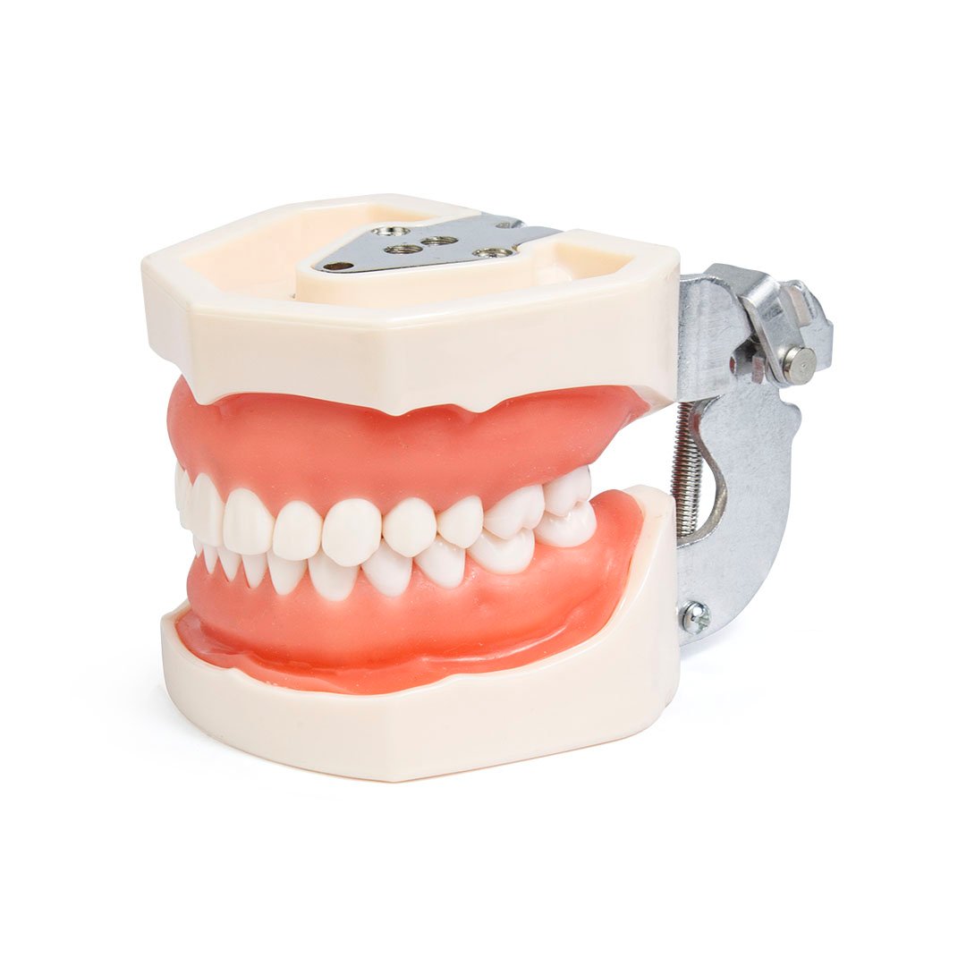Imitan la oclusión ideal de un paciente adulto en dentición estable y completa, dispone de 28 dientes, dientes intercambiables con un fino tornillo en la base.