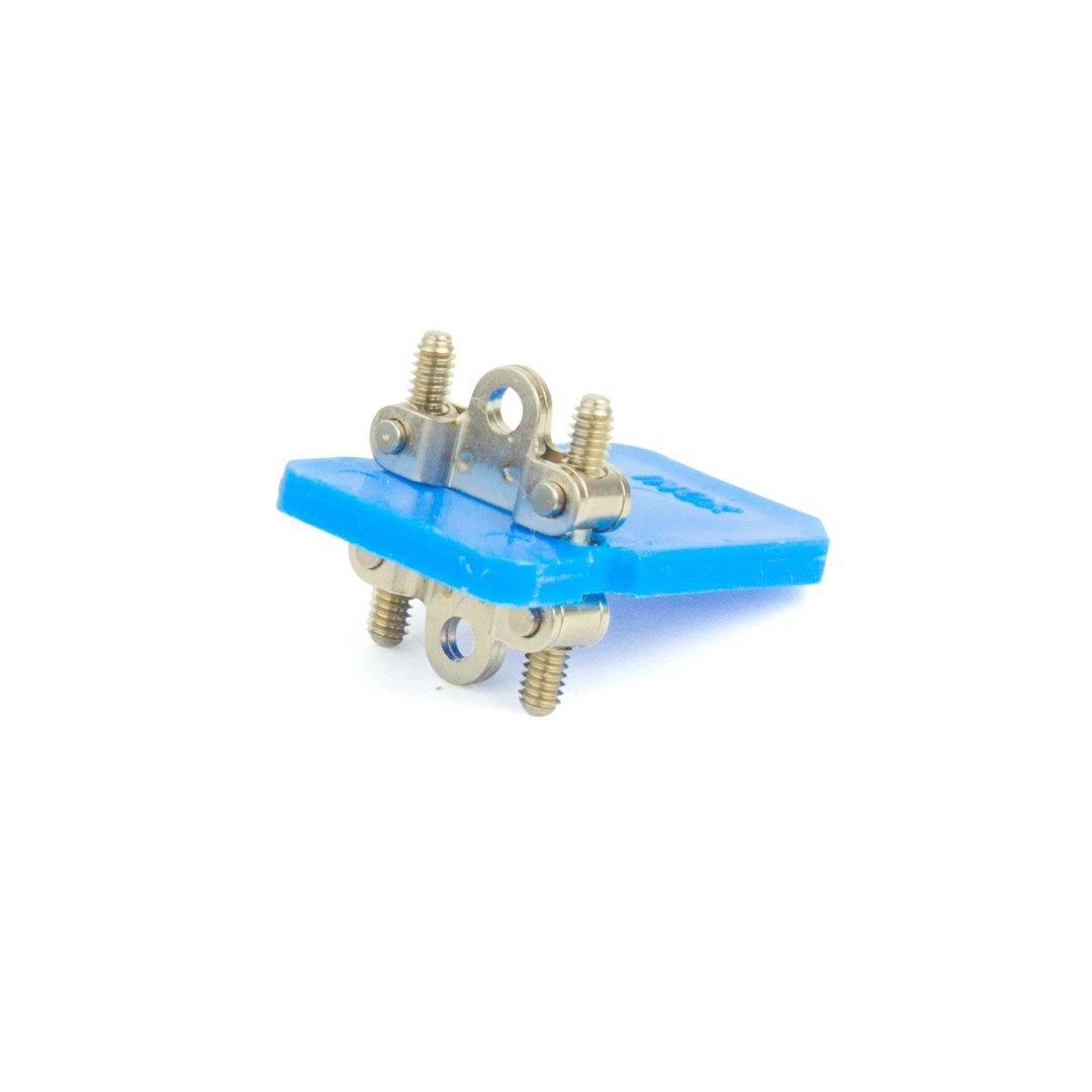 Este tornillo está compuesto de dos cuerpos de acero inoxidable casi tradicionales y dos tornillos macho que permiten una amplia variación anterior-posterior.