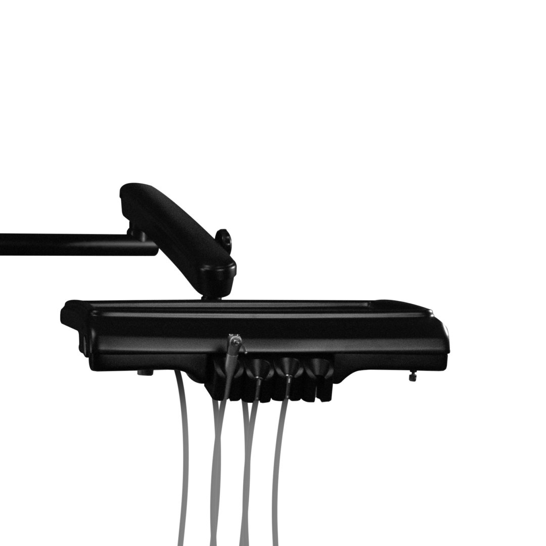 - Módulo: de suspensión manual, jeringa triple con puntas intercambiables esterilizables, entradas para pieza de mano alta y baja velocidad (automáticos)y conexión rápida para escariador.