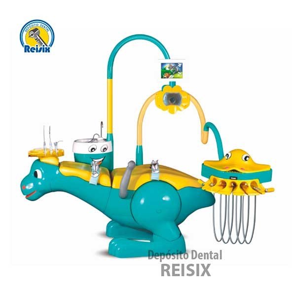 Haz de tus consultas pediátricas un mayor éxito con la unidad dental en forma de dinosaurio, cómoda y divertida, para una mayor cooperación y seguridad en el px